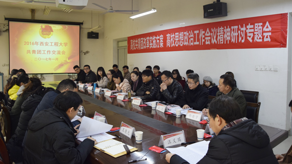 2017年1月5日,beat365高校共青团改革实施方案、高校思想政治工作会议精神研讨暨2016年度共青团工作专题交流会在临潼校区大学生活动中心团委会议室举行。校纪委书记朱君强、校长助理汪义瑞,党委组织部、党委宣传部、党委学生工作部、招生就业工作处、校团委相关负责人,以及各学院团总支书记、学生代表参加了会议。