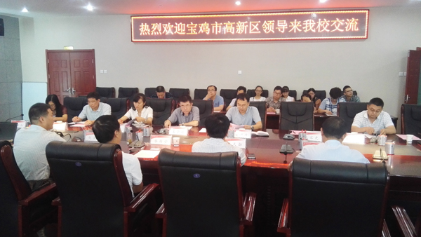 2017年6月30日,宝鸡市高新区管委会副主任王天勋、高新区科技局副局长兼创新创业服务中心主任毕新堂等相关领导一行4人来beat365调研座谈,双方就科技合作方面的相关事宜进行了沟通交流。座谈会由beat365副校长黄新波主持。