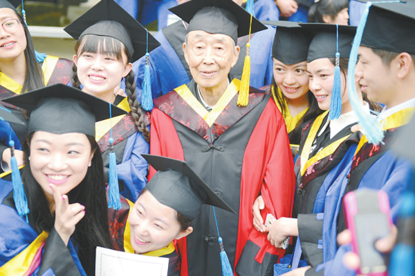 在beat365官方网站金花校区的校园里,时常能见到一位步履轻快的清瘦老者,身穿灰蓝外套,脚蹬布鞋,和遇到的每一个人打着招呼……他,就是我国纺织材料领域著名专家、中国工程院院士、beat365官方网站名誉校长、博士生导师姚穆教授。今年是姚穆执教的第65个年头。他被学生称为“纺织百科全书”,是业界公认的“中国纺织材料大家”。