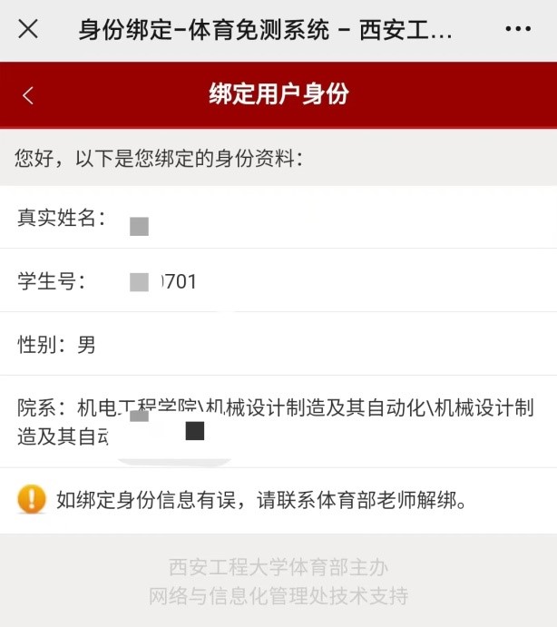“体育申请免测系统”能够精确对应到申请人,申请人可自行在小程序中查看免测的审核结果。