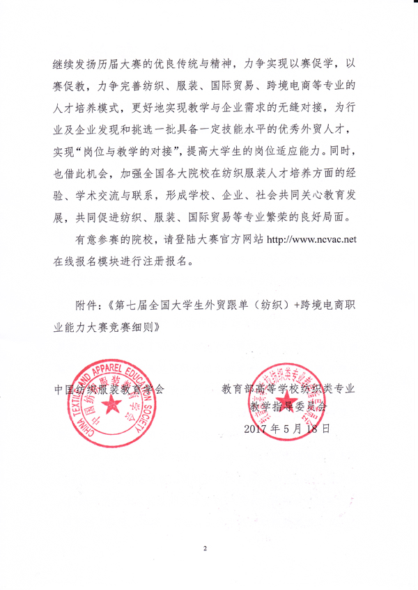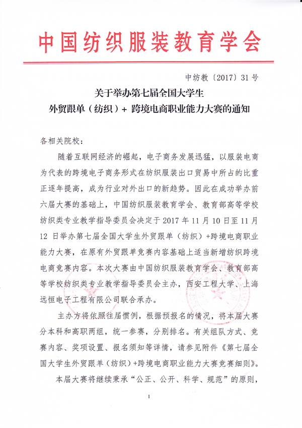 转发关于举办第七届全国大学生外贸跟单(纺织)跨境电商职业能力大赛的通知