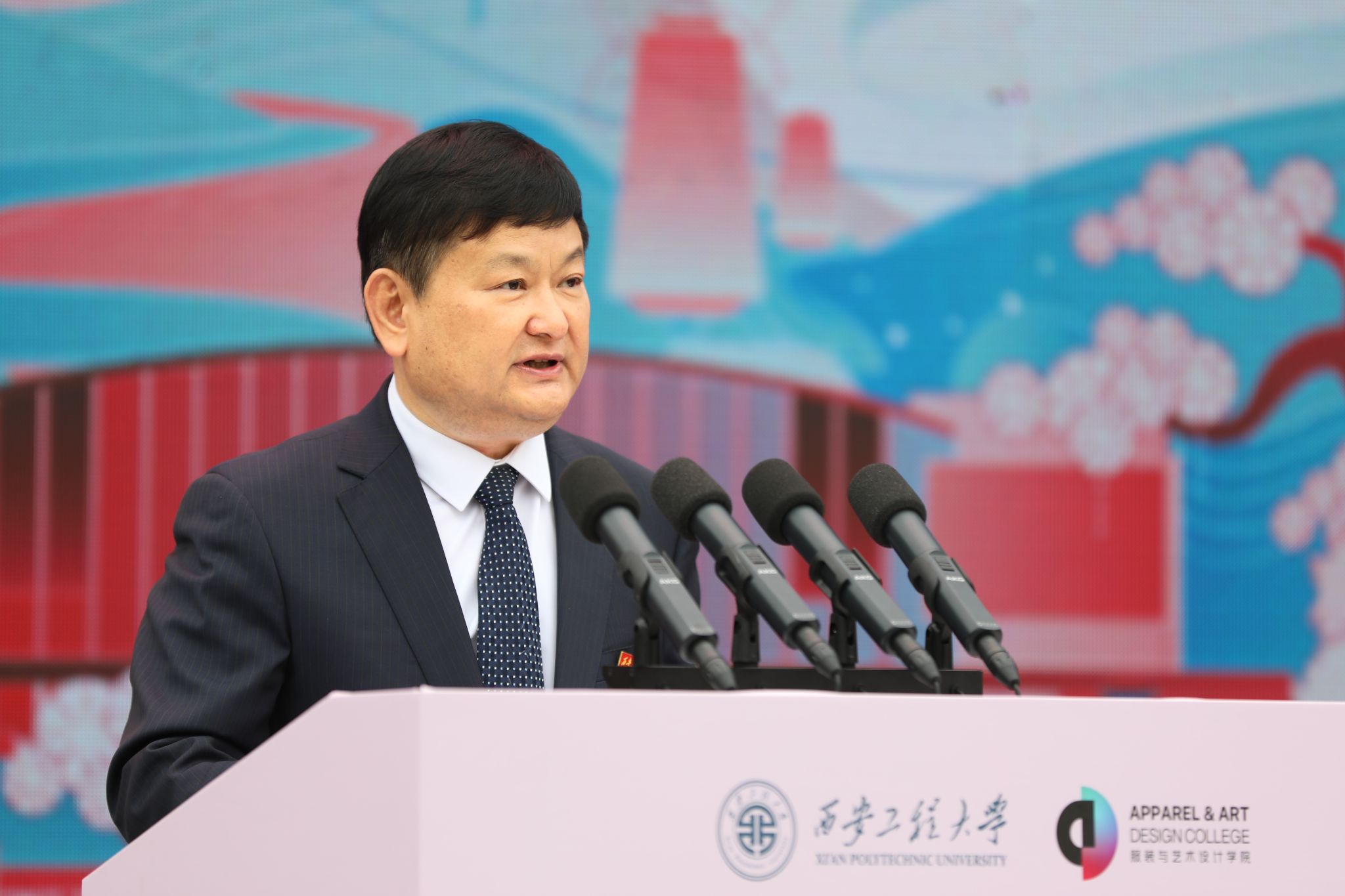 校党委书记马万清在致辞中介绍了学校的历史沿革和服装学院的办学特色及办学成效。他表示,学校在百年办学历程中坚持立足陕西、辐射全国,构建了完备的服务现代纺织产业的人才培养体系。服装学院在长期办学过程中主动融入国家发展大局,坚持“立德、著艺、融工、强效”人才培养理念,形成了“厚基础、重实践、求创新、艺工结合”的办学特色,创建了我国首个服装专业硕士学位授权点,为国家服装领域产业发展做出突出贡献。马万清指出,党的二十届三中全会胜利召开,为进一步深化教育综合改革指明了前进方向,学校将抢抓“教育科技人才体制机制一体化改革”机遇,深入挖掘设计学科优势特色,勇担推动原创设计、赋能时尚产业新质生产力的发展使命,加快建设特色鲜明的高水平教学研究型大学,奋力书写新时代学校事业高质量发展新篇章。诚挚欢迎社会各界朋友和校友们来校交流、共话发展、共赢未来。