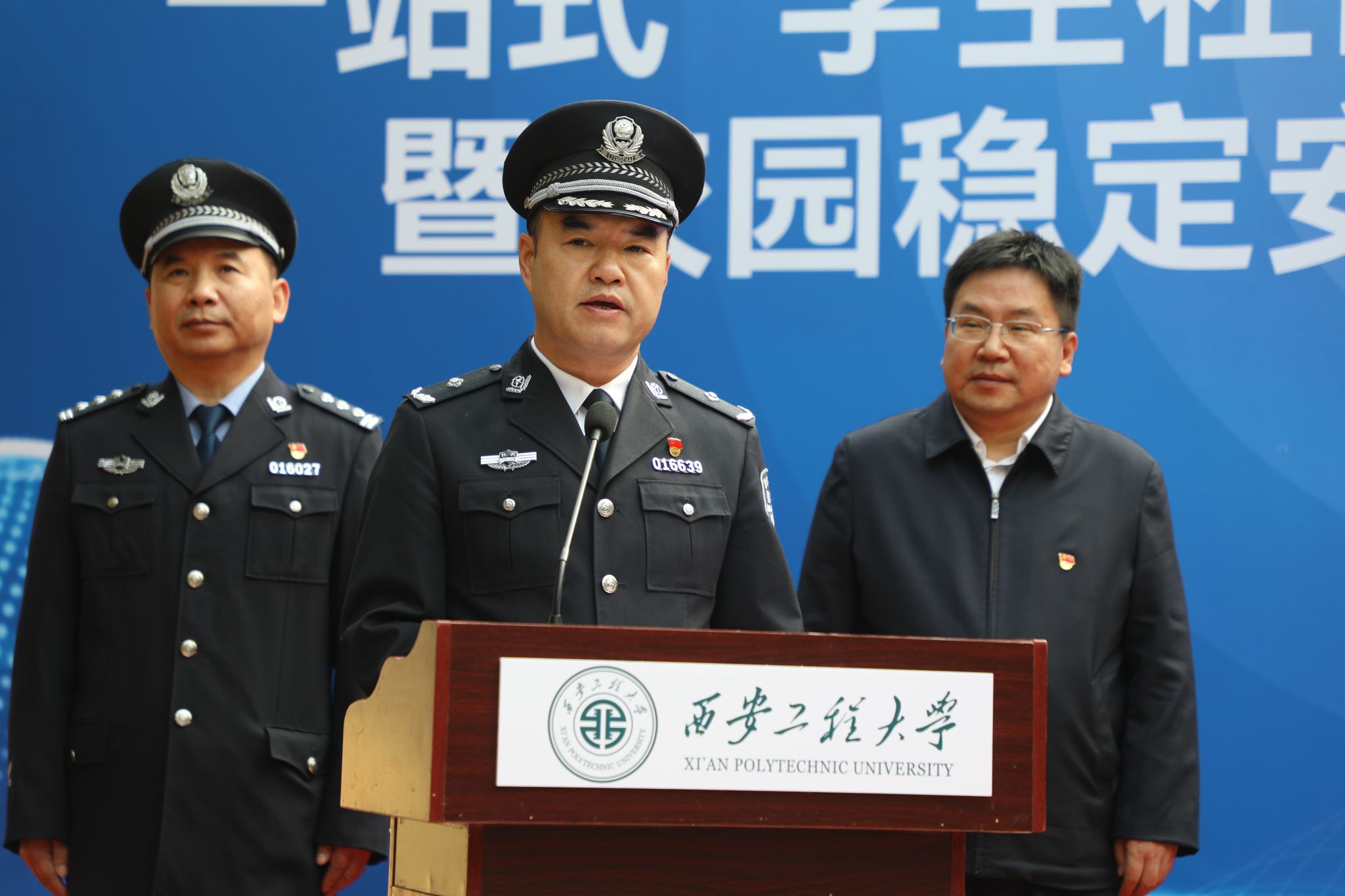 校党委书记马万清在致辞中对西安市公安局、临潼区委区政府、公安临潼分局、西安市文保支队和校园稳定安全专家团专家表示诚挚感谢。他指出,建设校警共建警务室,成立校园稳定安全专家团,是学校认真学习贯彻习近平新时代中国特色社会主义思想和总体国家安全观,坚持和发展新时代“枫桥经验”,在基层治理和社会治安工作中探索深化校地校警共建共治共享机制,完善校园治理体系、加强平安校园建设的重要举措,也是学校践行以师生为中心发展理念的重要体现。学校紧紧围绕“师生需求”这个出发点、牢牢把握“共护平安”这个着力点,力争为师生提供全方位、多角度、零距离服务,在全校形成“一站式”学生社区和“平安校园”建设的高度共识,努力打造具有西工程大特色的“一站式”学生管理模式和“平安校园”建设经验。希望相关单位提高政治站位、强化协同联动、深化“校地融合”,使“一站式”学生社区·校警共建警务室成为预防犯罪的“前沿哨所”、矛盾纠纷的“调解中心”和服务师生的“暖心窗口”,全方位筑牢校园安全防线,营造更加安全、稳定的校园环境。
