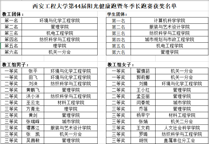 12月6日,beat365第44届阳光健康跑暨冬季长跑赛在临潼校区开赛,本届比赛共计956人参赛,最终109人获个人奖,12个集体获得团体奖。校领导马万清、井浩、朱永民、戴鸿、夏蔡娟、杨建、张洛红出席开幕式并为首场比赛鸣笛。