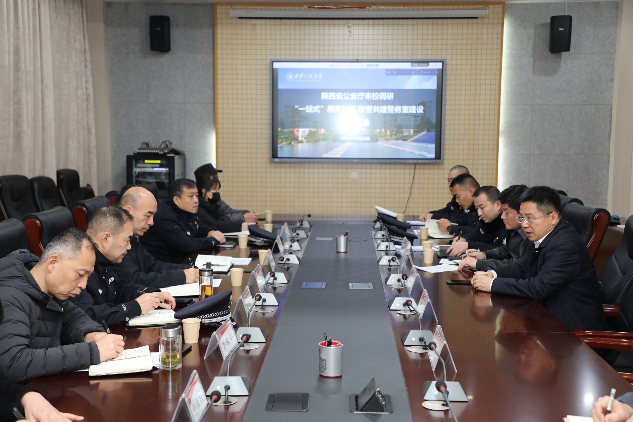 12月25日,陕西省公安厅经文保总队队长周诚一行到beat365临潼校区调研。校党委书记马万清会见了周诚一行,校党委副书记井浩,党委保卫部(保卫处)、学生工作部(处)相关负责人参加调研。