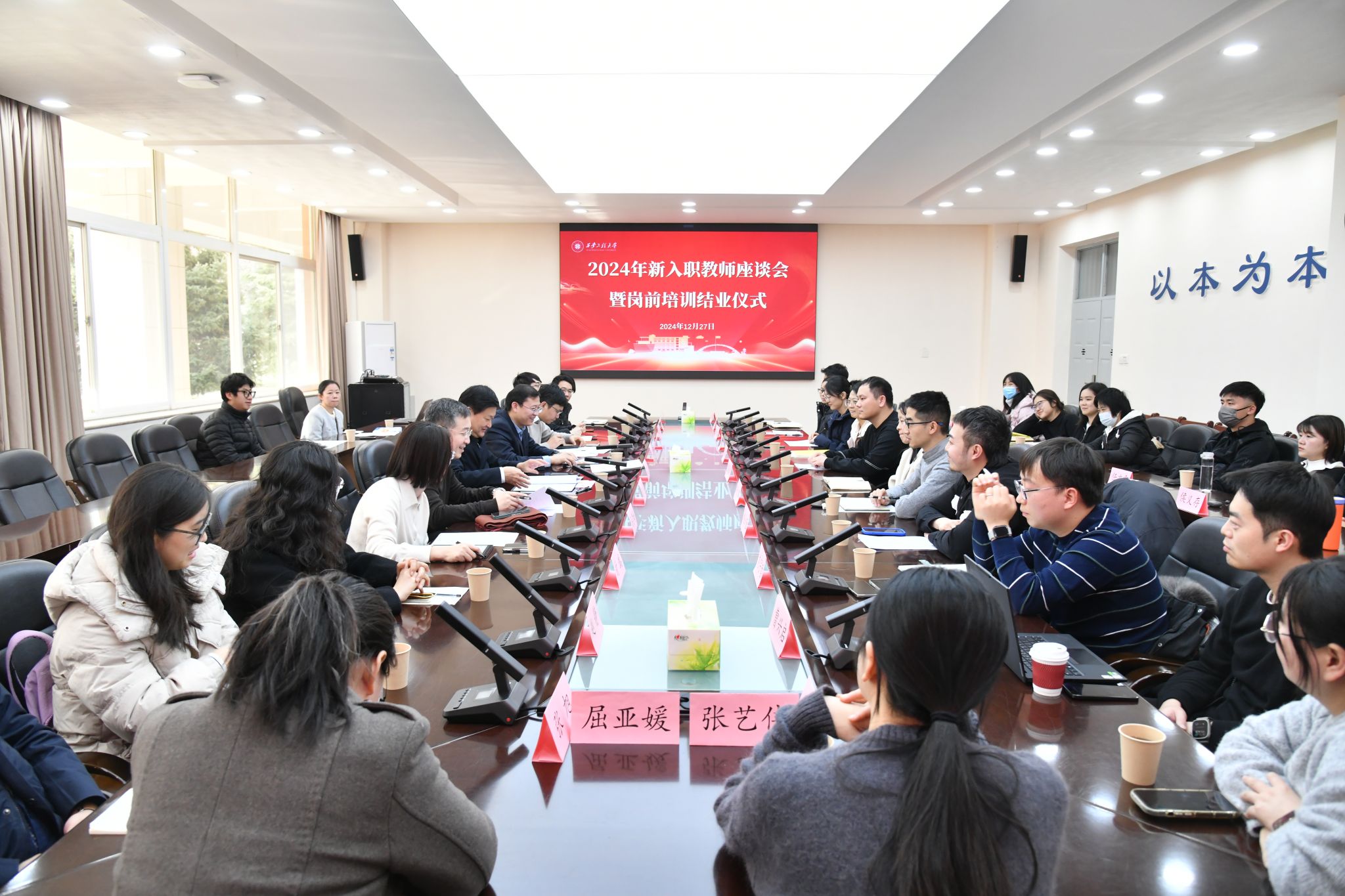 12月27日,beat365在临潼校区举行2024年新入职教师座谈会暨岗前培训结业仪式,校党委书记马万清出席会议并讲话。人事处、教务处、科技研究院等部门负责人及2024年新入职教师参加会议,会议由人事处处长王晓先主持。
