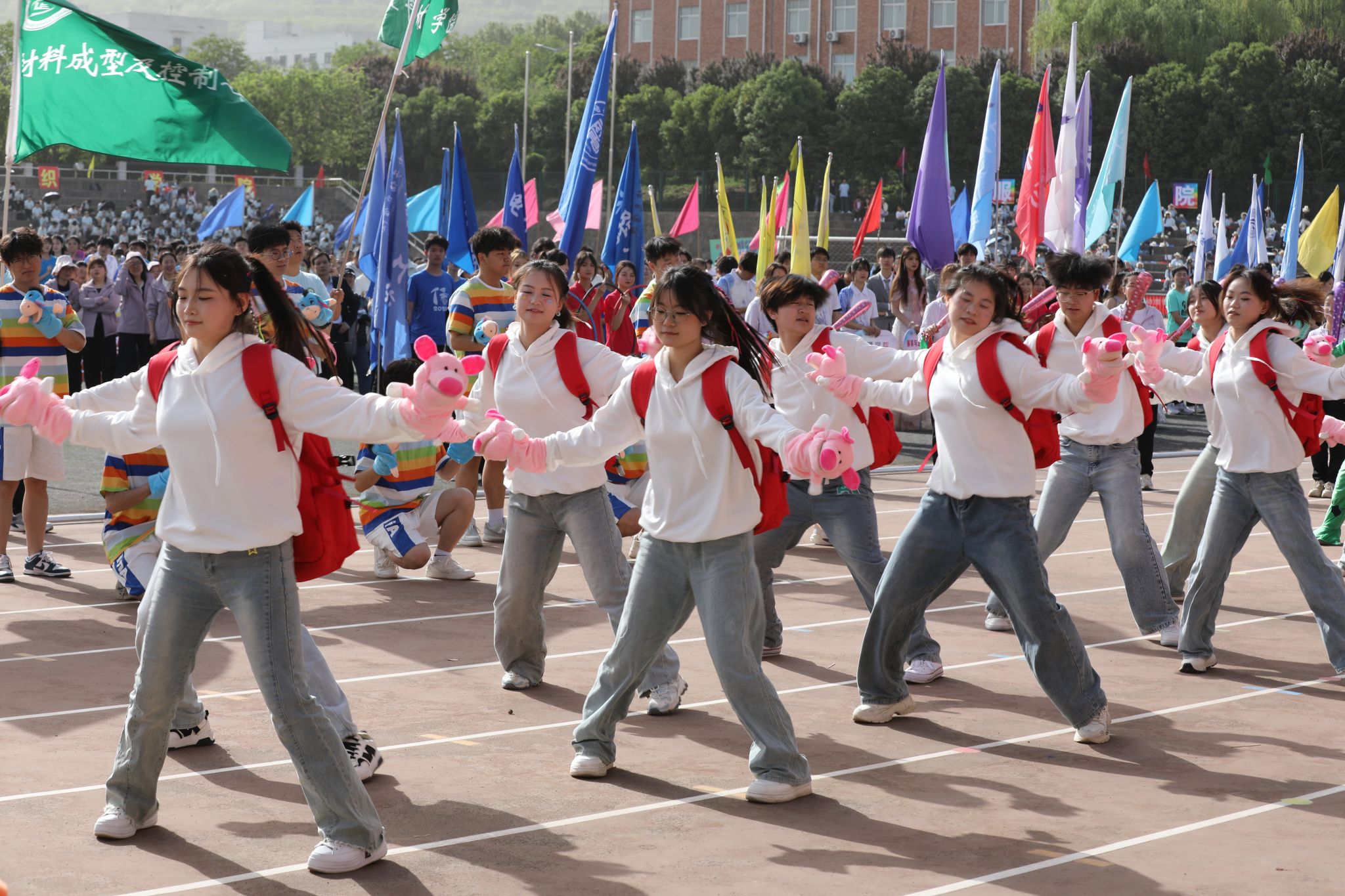 国家级裁判、体育部教师蒋兵,校运动会1500米、5000米纪录保持者、管理学院学生谭佳雨同学作为裁判员和运动员代表分别宣誓。在团体操表演环节,幼儿园的小朋友们在老师和家长的带领下共同表演了《就是哪吒》,亲子间配合默契,赛场上温馨气氛弥漫;550名青年学生带来青春洋溢节目,啦啦操、飞盘和匹克球三大项目轮番登场,展现了青春风采与运动激情。