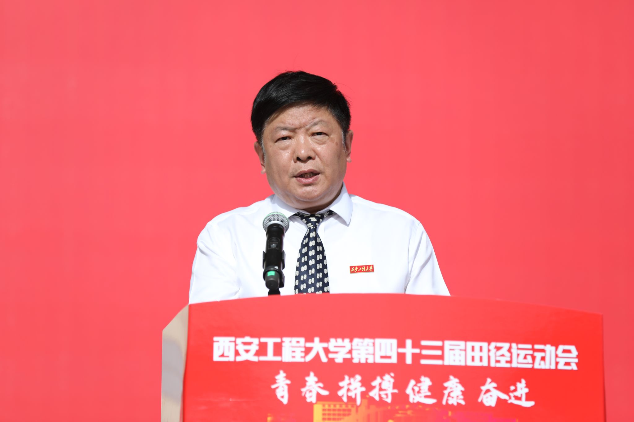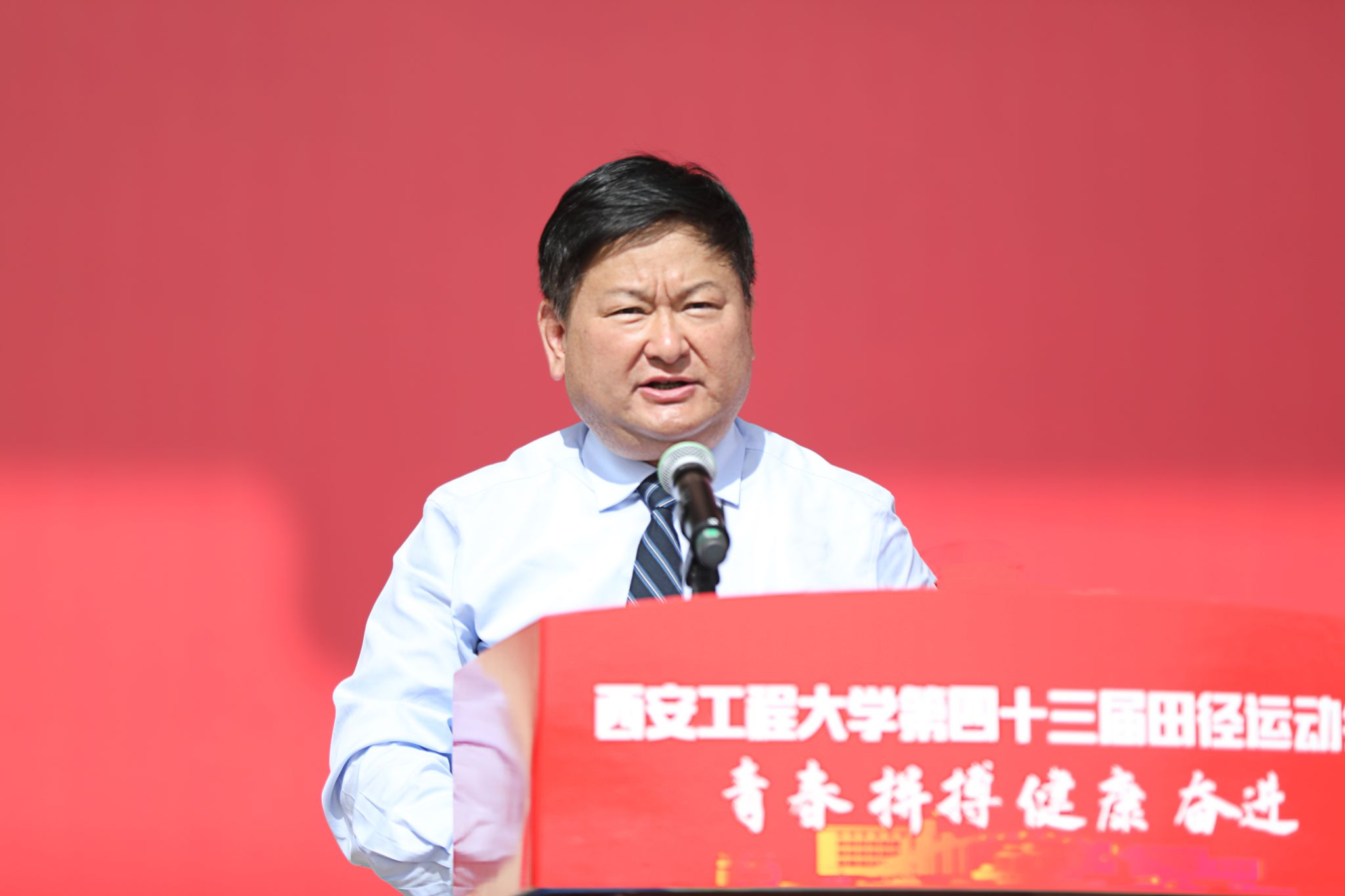 庄严的升旗仪式结束后,王海燕致开幕词。他指出,无体育不教育。2024年,学校全面实施学生体质强健计划,系统性推进体育教学改革,着力提升体育教学质量,学子在全国、全省各类体育竞赛中累计获奖40余项,创历史最好成绩11项,“体教结合”取得丰硕成果。运动会的意义不仅在于争夺名次的闪耀,更在于激发超越自我的勇气、书写属于自己的传奇,希望大家牢记“更高、更快、更强、更团结”的格言,传承和弘扬中华体育精神,在比赛中享受乐趣、锤炼意志,彰显出新时代西工程大人“以体育魂、以梦为马”的豪情壮志,让青春在赛场上绽放耀眼光芒。