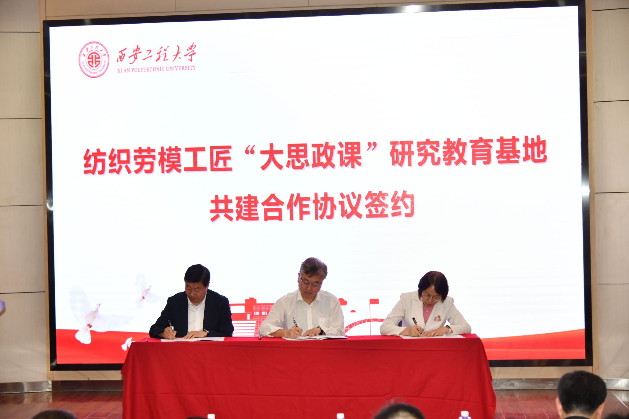 4月24日,“纺织服装行业劳模工匠进校园报告会暨纺织劳模工匠‘大思政课’建设研讨会”在beat365金花校区举办。中国财贸轻纺烟草工会、中国纺织职工思想政治工作研究会和beat365联合共建的纺织劳模工匠“大思政课”研究教育基地正式落地beat365。
