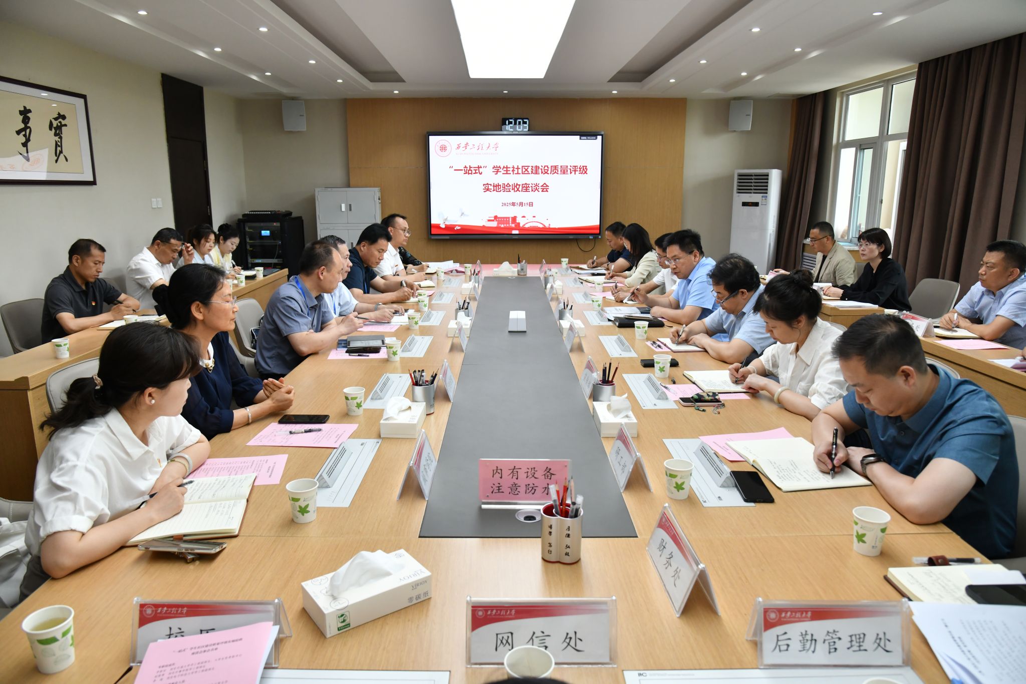 5月15日,陕西省委教育工委“一站式”学生社区综合管理模式建设质量评级专家组考察复验beat365“一站式”学生社区建设情况,校党委副书记井浩出席座谈会并作表态发言,学校“一站式”学生社区建设工作领导小组成员单位负责人及部分学院党委书记、副书记参加座谈会。