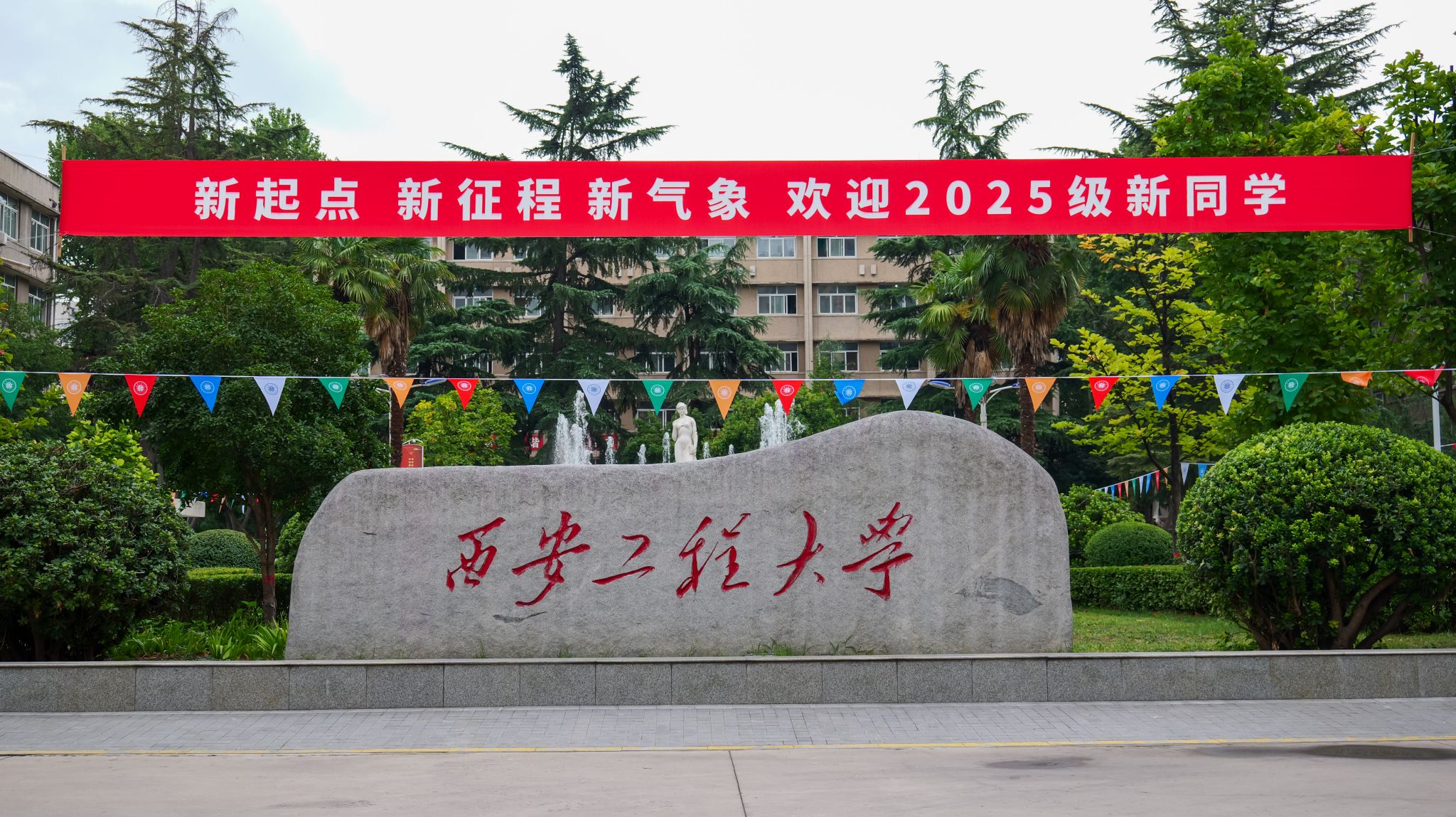 校园内,“你好2025级新同学”“青春正当时,挺膺新征程”“厚德弘毅 博学笃行”……桁架、道旗、展板、横幅与校区特色、校园环境相呼应,营造出浓厚热烈的迎新氛围。为了方便新生报到,学校贴心提供了“一站式”迎新服务,一辆辆摆渡车满载新生和家长驶向临潼校区中心广场,学长学姐高举各学院标牌翘首以盼,形成一条迎新大道,热情引导新生报到;校团委设有5个共青团先锋岗,150余名学生志愿者穿梭在人群之中,为新生及家长提供路线指引、行李搬运等细致服务;学工部、研工部、招就处工作人员耐心解答疑问,财务处、资实处、网信处、后勤管理处、校医院等部门有序做好缴费咨询、帐篷供应、网络运维、工作餐保障、医疗应急等服务,党委保卫部协同交警、保卫队员及时疏导各类车辆有序停放,各单位齐心协力,让每一位新生与家长感受到便捷、高效和温馨的接待服务,展现出了西工程大人昂扬的精神风貌。