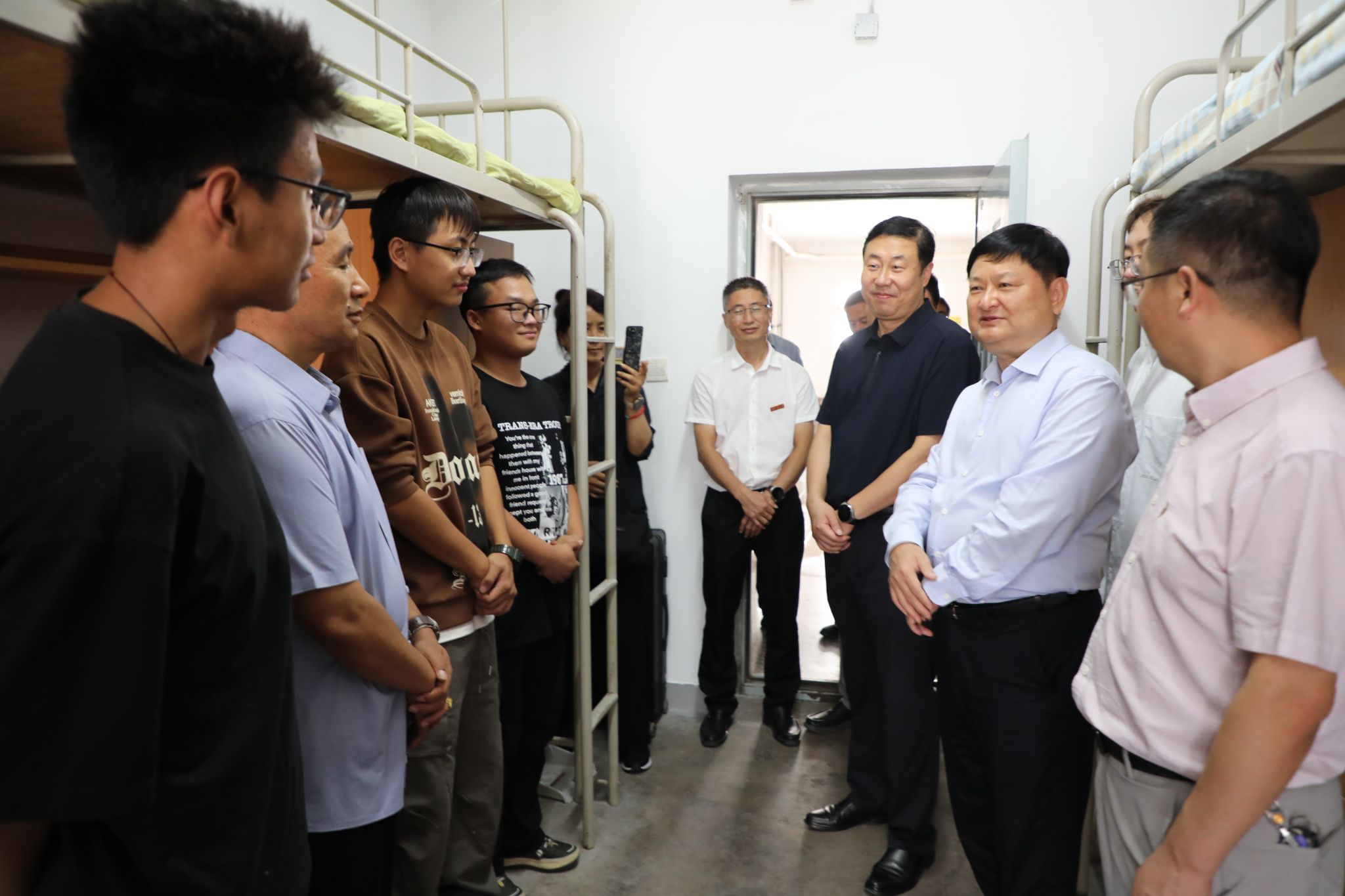 为保障迎新工作平稳有序,学校精心筹划、周密部署,校党委书记马万清主持召开迎新工作协调会,要求各单位高度重视、密切协作,全力以赴做好各项迎新保障。校领导针对相关环节流程提出明确要求,确保工作高质开展、高效落实。迎新期间,马万清等校领导在报到现场与远道而来的新生和家长亲切交流,欢迎新同学们加入beat365官方网站的温暖大家庭,并前往各迎新点、宿舍、食堂等看望慰问迎新工作人员、志愿者,对大家的辛勤付出给予肯定和感谢。