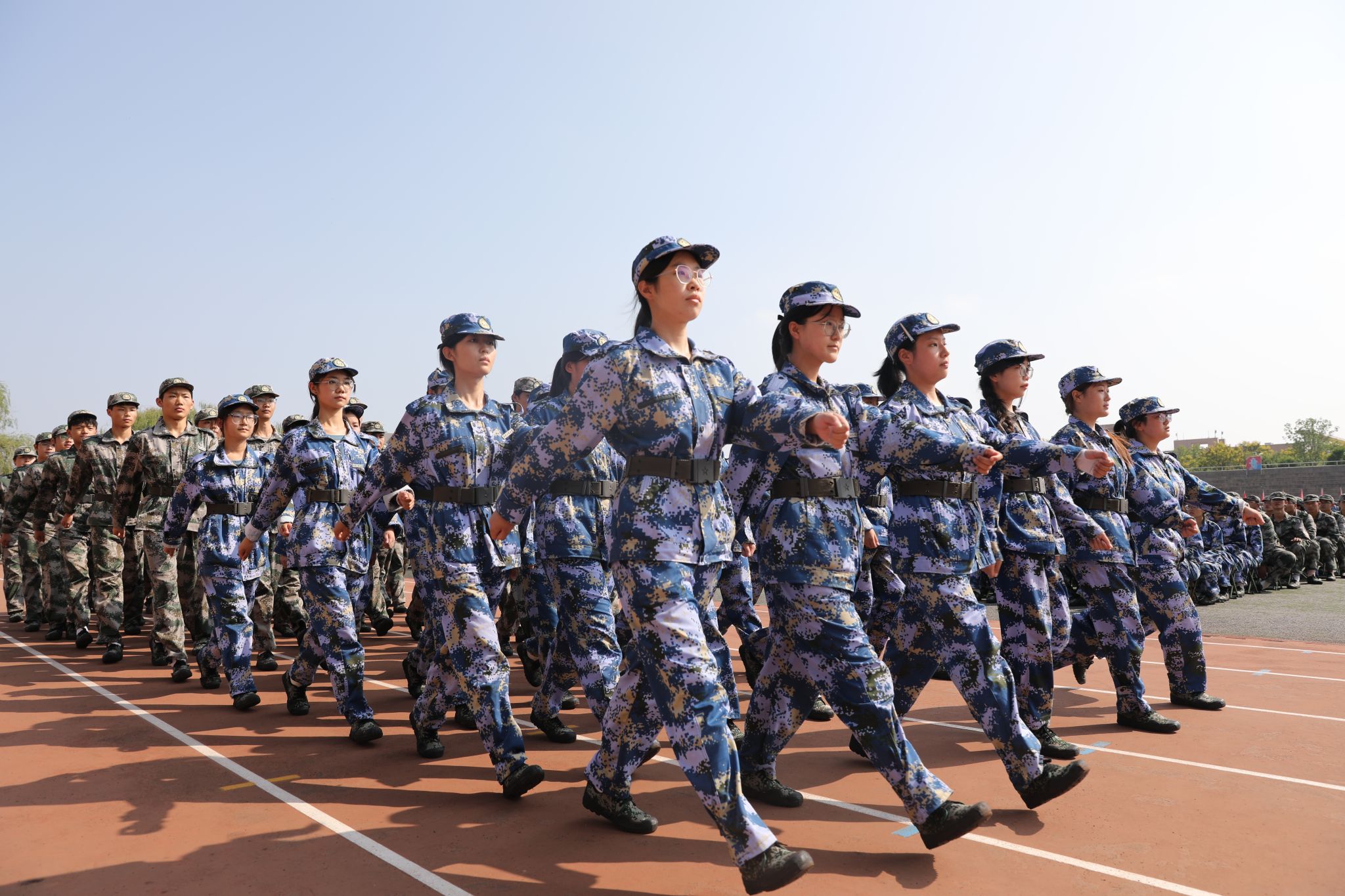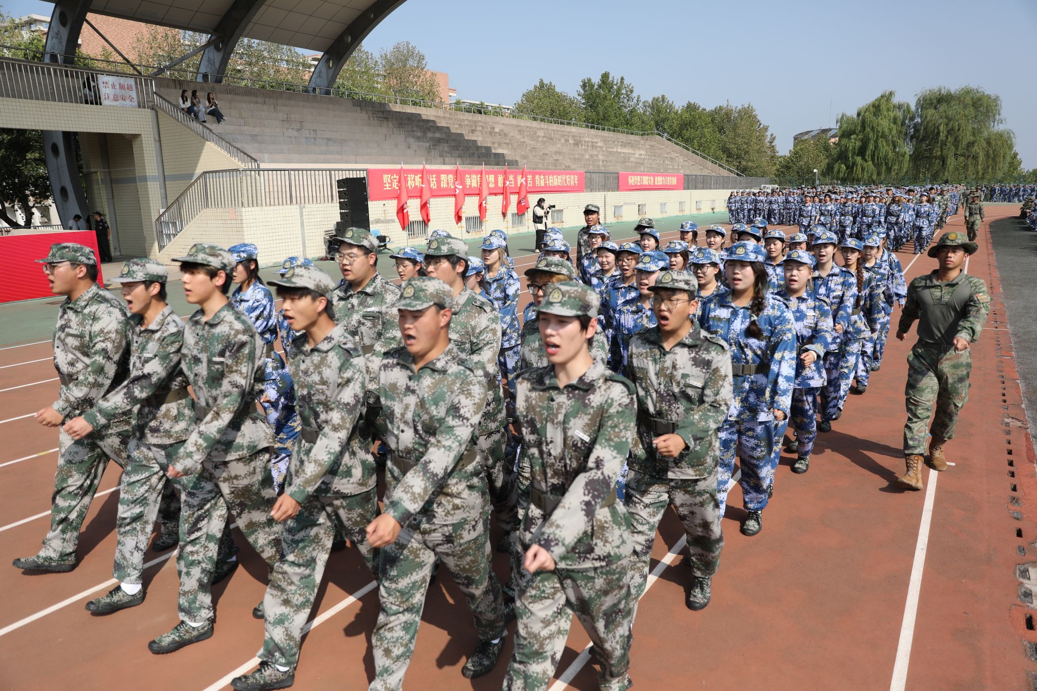 军训旅依次进行连队队列歌曲展示和教官军体拳展示,同学们步伐铿锵、军容严整、口号震天,充分展现了新时代青年学子昂扬向上的精神风貌和军训取得的丰硕成果。