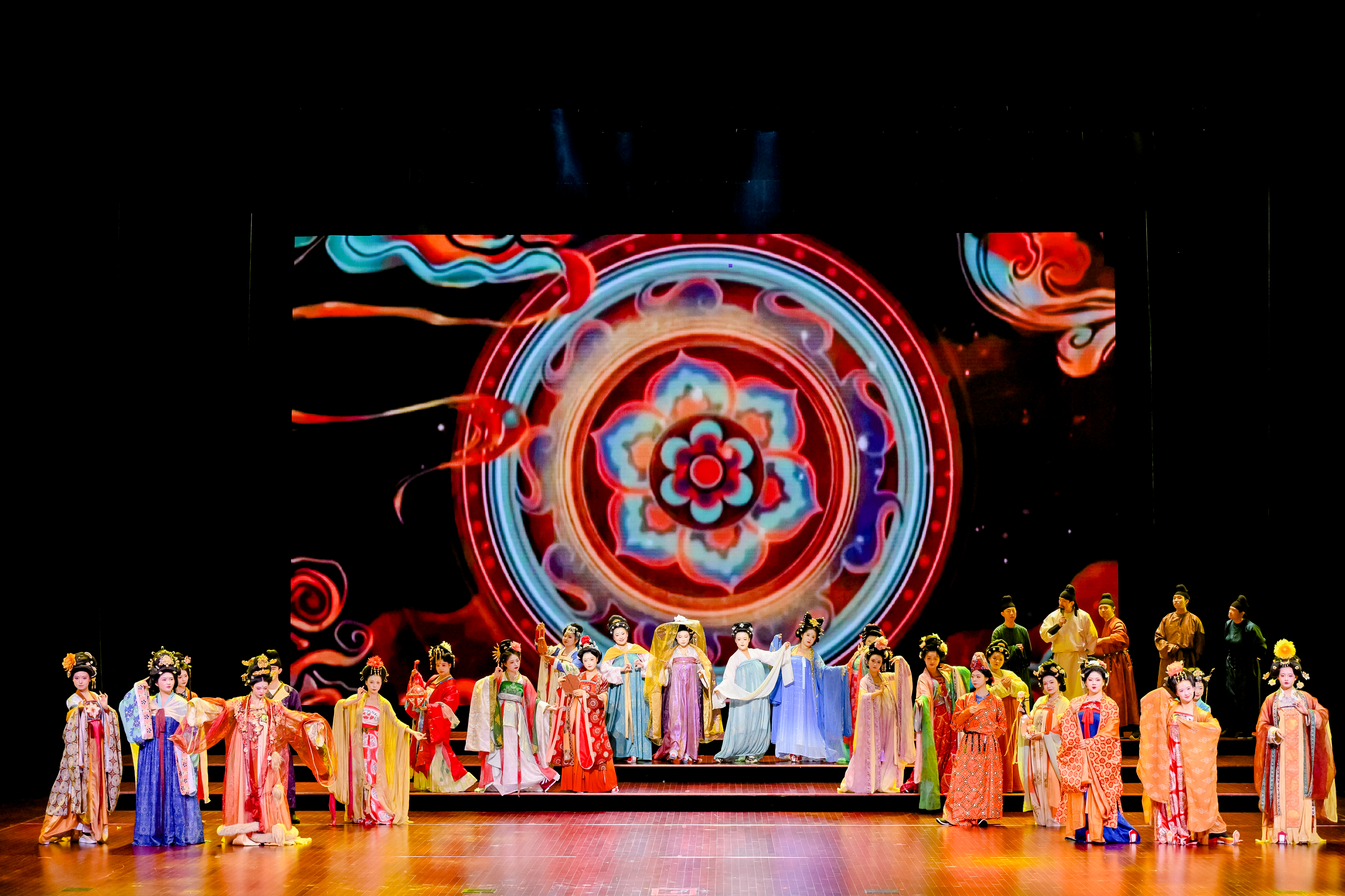 在汉服展演环节,由beat365策划编导的“金蚕铭:丝路织梦”诗画汉服国风大秀精彩上演,演出以“汉风·凿空之旅”“唐韵·交融盛世”“宋韵·茶香悠扬”“金蚕故乡·上元安康”四个篇章生动展示了入围大赛决赛的汉服设计佳作。整场节目融合舞蹈、诗歌朗诵与情景演绎等多种艺术形式,将秦汉的雄浑气象、盛唐的繁华风貌、宋明的雅韵情致一一呈现,带领观众穿越时空,深切感受中华传统服饰文化沉淀千年的深厚底蕴与美学追求。