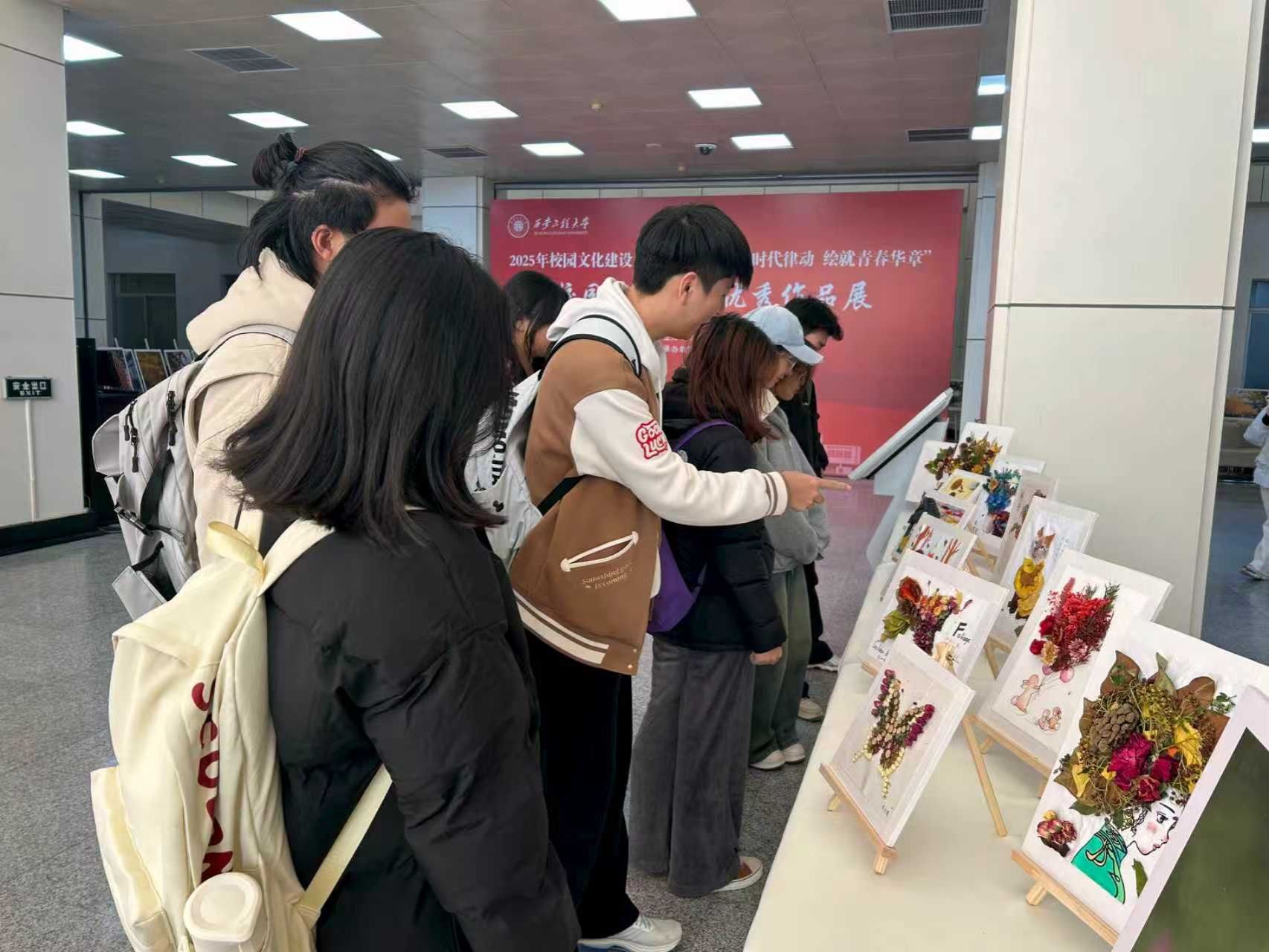 开幕式后,与会领导与师生一同观展,交流观赏心得。获奖学生在现场分享作品背后的故事。大家在光影交织的艺术氛围中,感受校园文化与时代精神的同频共振。