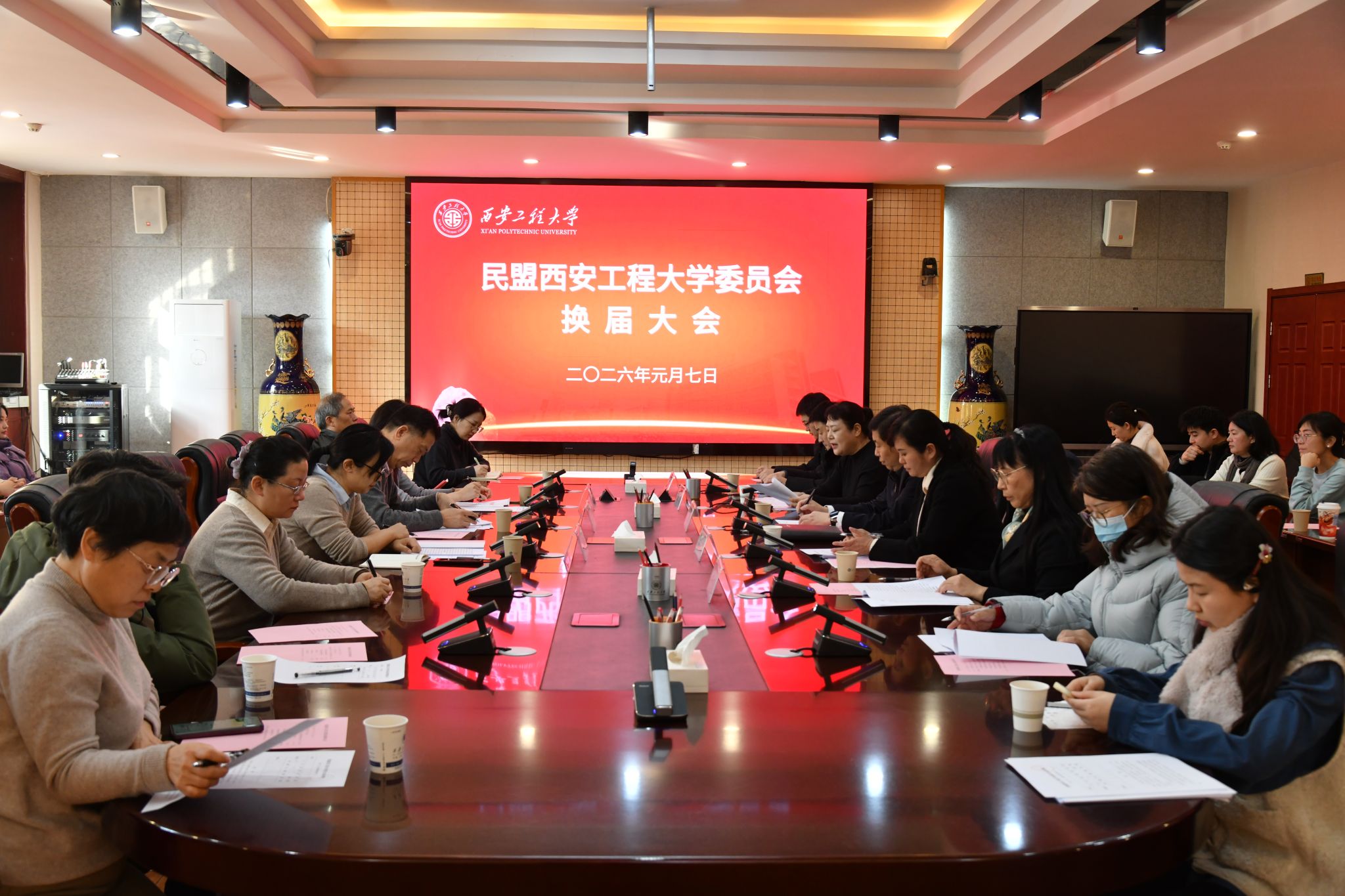 2026年1月7日,民盟beat365官方网站委员会在金花校区召开盟员代表大会,选举产生第二届委员会领导班子。民盟陕西省委会副主委赵玉龙、组织部副部长杨明、四级调研员王冬雪,校党委副书记殷永建、党委统战部负责人以及校盟员代表参加会议。民盟beat365官方网站委员会第一届主委邵璐主持会议。