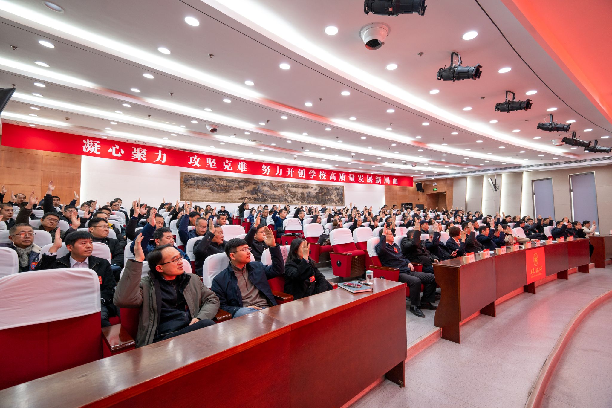 在大会第一次全体会议上,张晓晖作了题为《凝心聚力谋发展攻坚克难创一流奋力谱写学校高质量发展新篇章》的工作报告。他指出,本次大会是在教育强国建设迈上新征程,学校全面收官“十四五”、系统谋划“十五五”的关键时期召开的一次重要会议。报告全面回顾总结了学校“十四五”时期在党的建设、学科发展、教育教学、科技创新、师资队伍、文化传承、开放办学、民生改善等方面取得的成就,深入分析了新发展阶段学校面临的形势与任务,系统阐述了“十五五”时期的发展思路与主要目标,并从强化政治引领、深化铸魂育人、聚力学科登峰、深化教育教学改革、实施创新驱动、坚持人才强校、繁荣大学文化、深化体制改革、加强干部队伍淬炼、筑牢安全底线等十个方面,对2026年及今后一段时期的重点任务作出了部署。