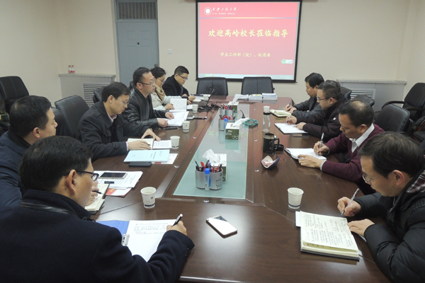 12月20日上午,高岭调研走访学生工作部(处)和校团委。两部门负责人分别从工作概况、特色团学工作、取得成绩、存在问题与困难做了汇报,同时两个部门结合全国高校思想政治会议精神对团学工作提出的新要求、新挑战,就今后加强团学工作的思考和措施做了汇报和说明。高岭结合自己曾担任过班主任的经历指出,学生思想政治工作具有责任大、任务重、挑战多、要求高等特点,这就要求学工干部既要有成年人的耐心和智慧,又要敏锐把握年轻大学生的思想动态,做到与时俱进、因时而进、因事而新。他强调做好团学工作要不断加强学习,保持与时代同步;要明确目标,点面结合,加强协调,强化队伍,坚持以学生为本,提高服务质量和管理效率,创造良好育人环境,培养合格的建设者和接班人。