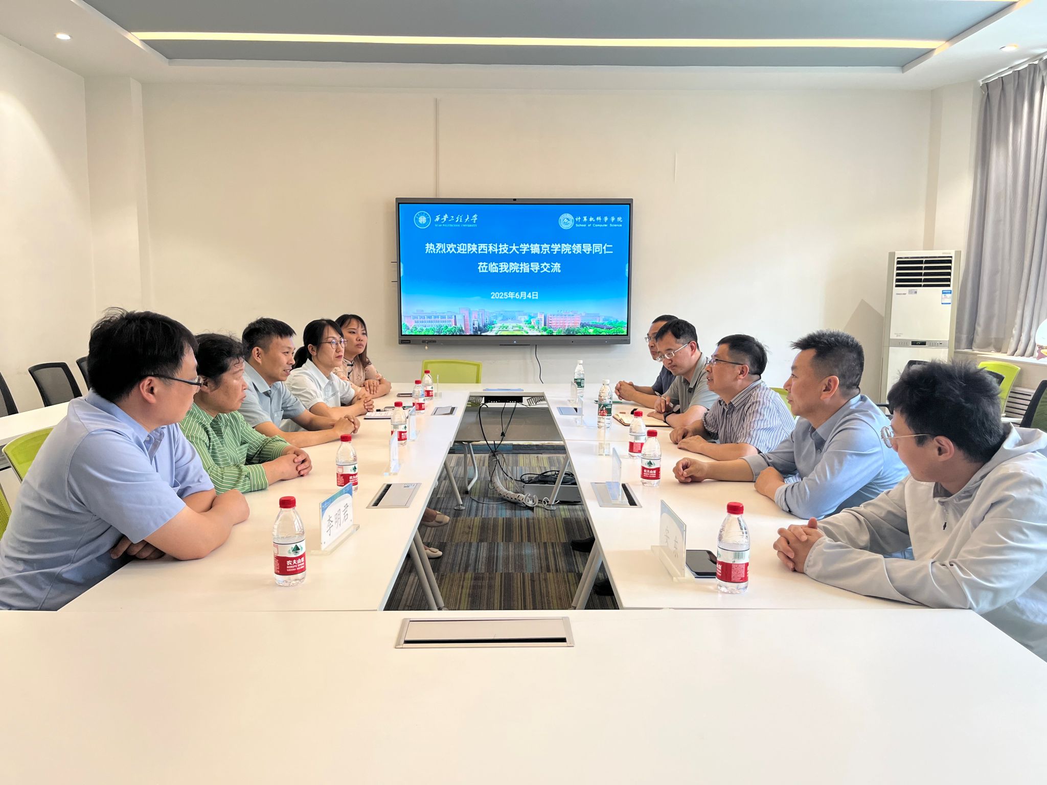 6月4日,陕西科技大学镐京学院计算机学院院长刘威,人事处处长赵虹、副处长王颖等一行7人莅临计算机科学学院,围绕“深化校企合作、创新人才培养、共促高质量就业”主题开展专项调研与人才招聘。双方通过“专题研讨+引才实践”双线联动,在就业服务优化、师资队伍建设等领域达成多项共识,刘威一行还在学院开展了现场招聘面试。