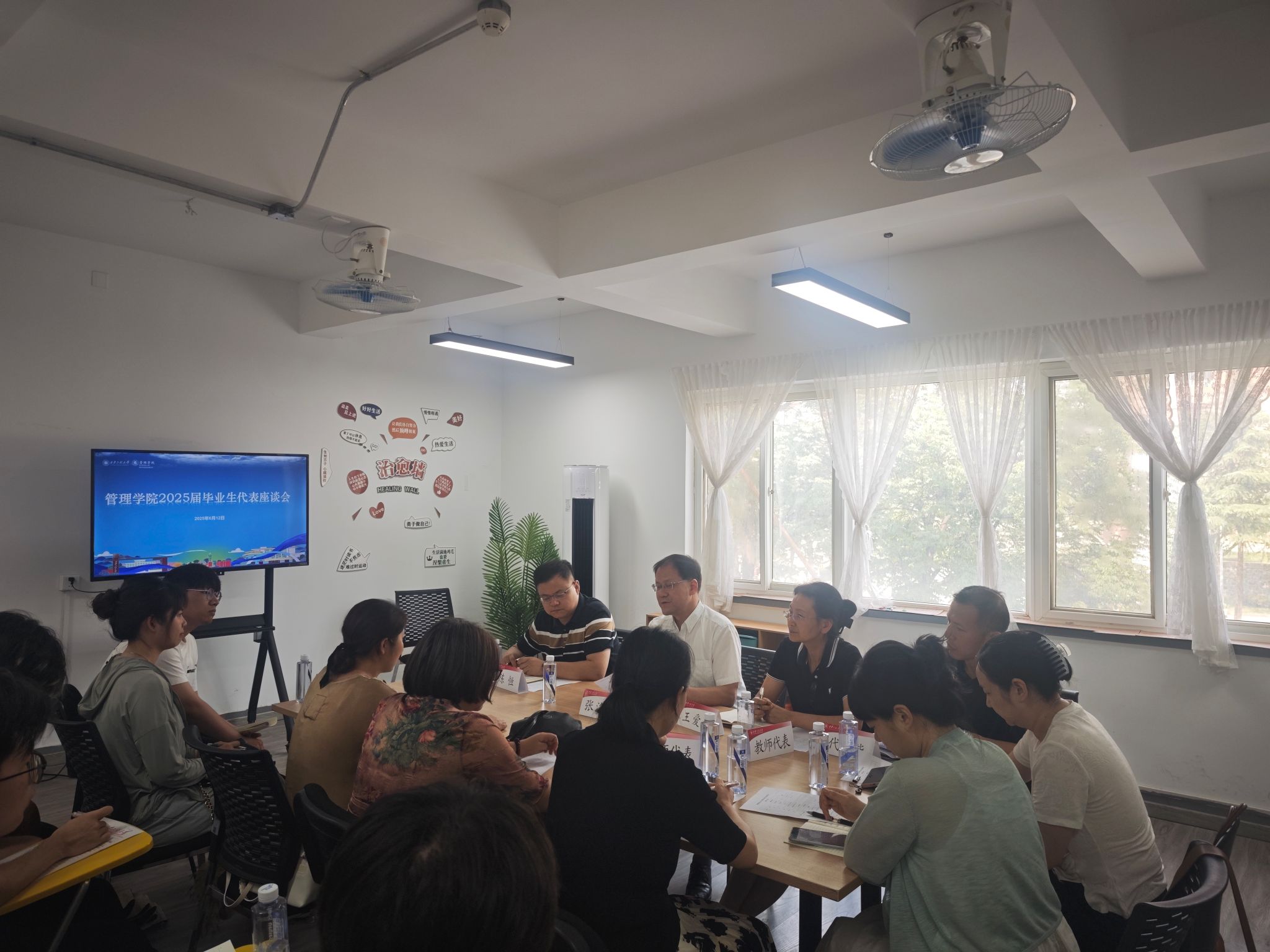 6月12日,管理学院在“一站式”学生社区召开2025届毕业生代表座谈会暨学风建设大讨论专题会,副校长张洛红参加会议,与管理学院领导班子、教师代表、相关辅导员及20余名毕业生代表面对面,围绕成长感悟、学业发展、学风建设等展开讨论,并听取同学们的意见建议。