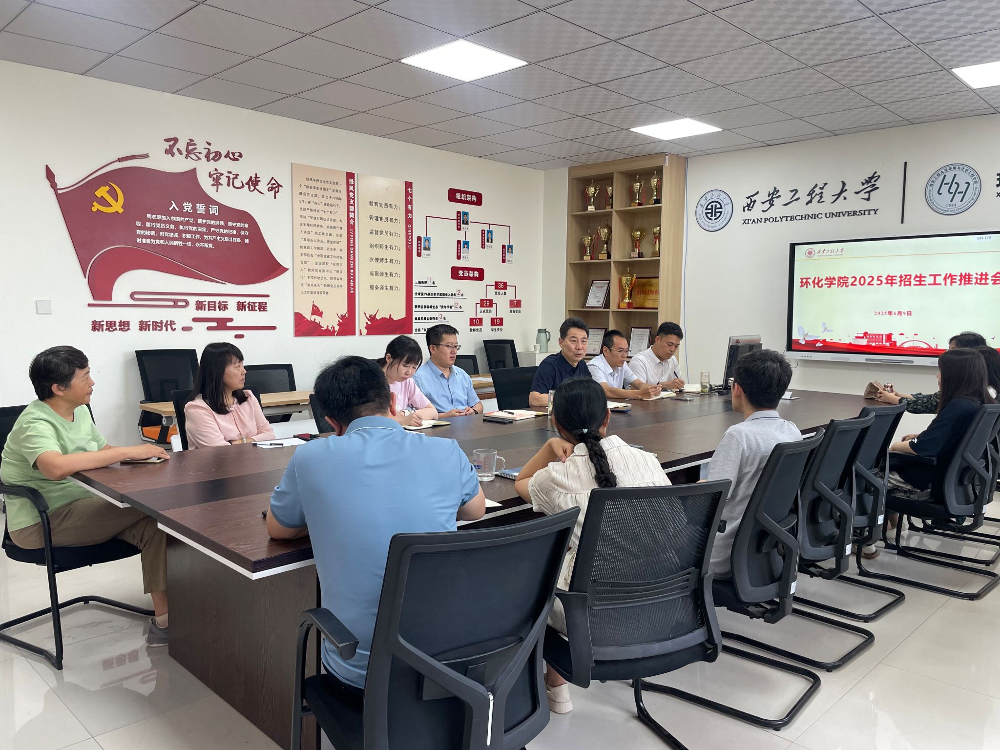 6月9日,环境与化学工程学院召开本年度招生工作部署会,学院党委书记胡西民传达学校精神,部署学院行动,与会教师认真学习新高考政策,深刻分析学院在今年招生工作中的困难和机遇,结合前期工作基础,明确了学院2025年招生工作重点,制定了“时间表”和“任务书”,确保工作有重心,行动有方向。在6月13日全院教职工大会上,胡西民强调要珍惜招生前宝贵的宣传时间,加大宣传力度,全院上下都是宣传员,利用好自己的社交平台,积极转发学校的招生宣传材料,服务好考生报考,努力把第一次新高考的基准线提高,为高质量办学打下良好的基础。