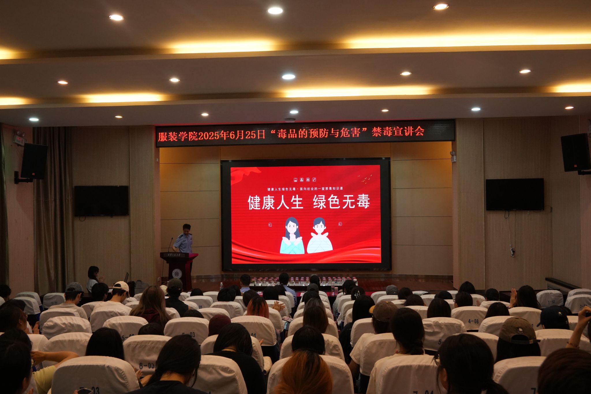 在第38个国际禁毒日来临之际,为进一步提升广大师生识毒、防毒、拒毒意识和能力,6月25日下午,首场系列活动——“健康人生,绿色无毒”专题宣讲会在金花校区西纺报告厅成功举办。西安市碑林区禁毒大队教育宣传一级警长高歌,碑林区禁毒委员会办公室毒品危害与防治专职讲师王豪、韩杰及服装与技术设计学院师生参加活动。