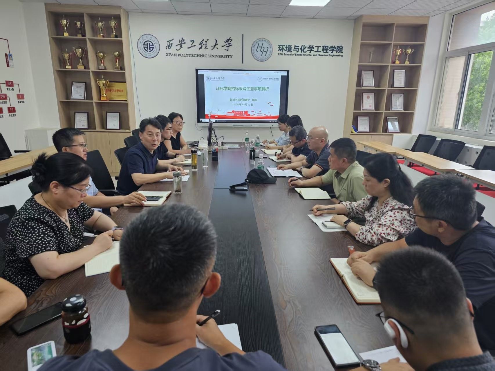 7月3日,环境与化学工程学院党委会同招标与采购管理处围绕学院当前重点工作,以“加强科研项目采购管理,提升招标采购执行能力”为工作主题开展共建活动,在环境与化学工程学院236会议室召开了招标采购专题培训会。会议由学院党委书记胡西民主持,招标与采购管理处戴新应邀主讲。学院党政班子全体成员,各系主任、项目负责人及相关科研管理人员参加了此次会议。招标与采购管理处全体人员到场参加此次共建活动。