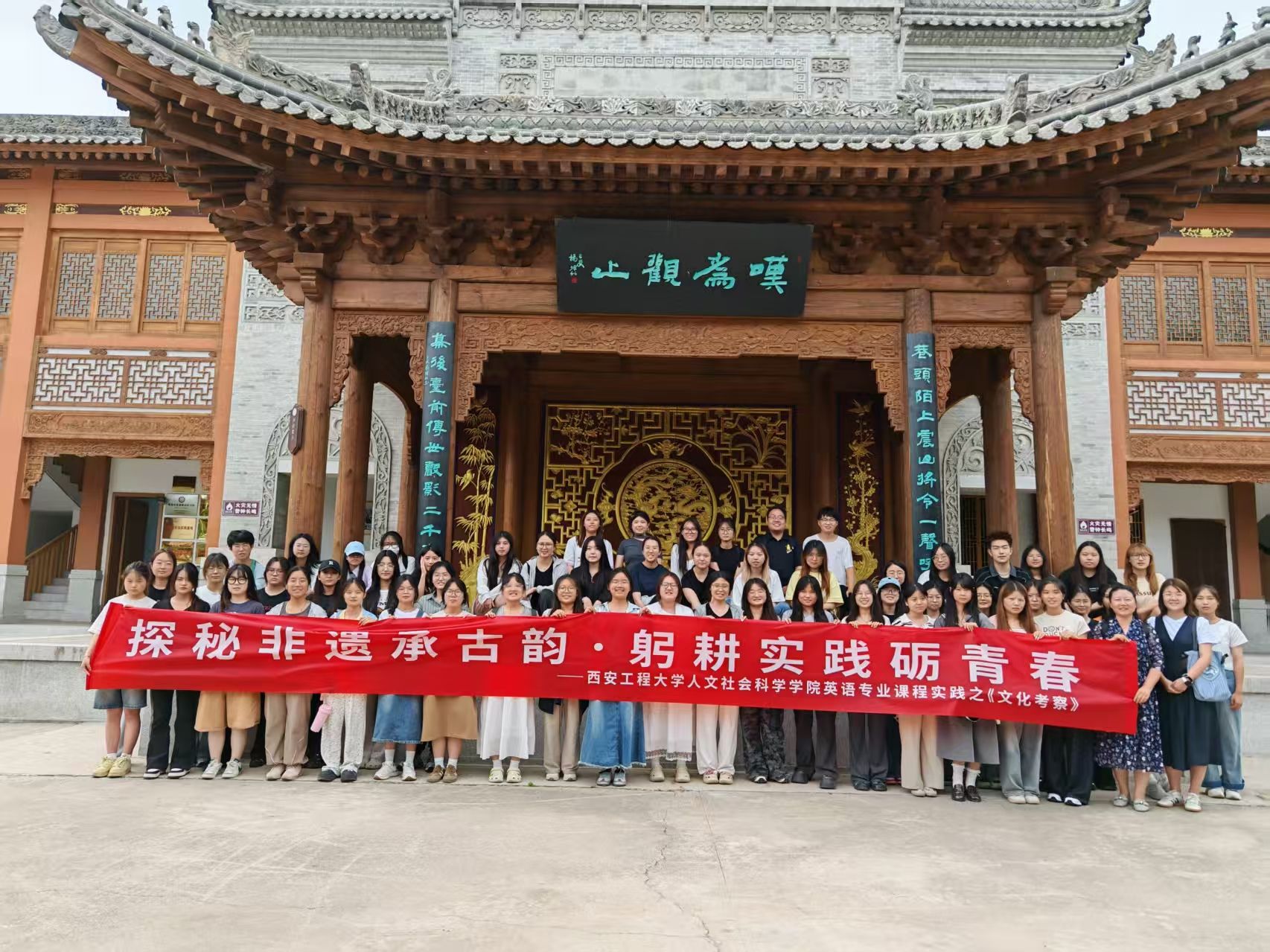 为推动英语专业学生将语言学习与文化传承深度融合,切实增强跨文化传播能力,人文社会科学学院英语系“三全育人”导师团精心组织了《文化考察》集中实践课程。这场为期一周的实践活动于2025年6月30日启动,7月5日圆满结束。从组织实地考察到开展主题汇报,最后进行实践报告的撰写,同学们在“行走观察—交流碰撞—沉淀总结”的完整链条中,深度触摸陕西民俗文化的肌理和脉搏,收获了一堂立体生动的“文化实践课”。