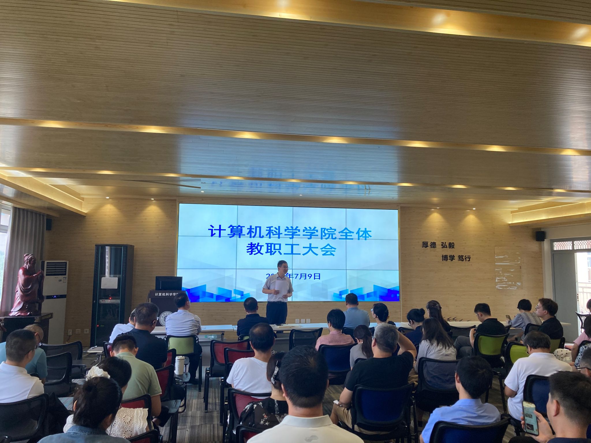 7月9日,计算机科学学院在临潼校区召开全体教职工大会。学院副院长张凯兵,党委副书记闫小兵、赵勇进,副院长王蒙就主管或分管的上学期工作进行总结,并安排部署下学期和暑期工作。学院全体教职员工参会,会议由闫小兵主持。