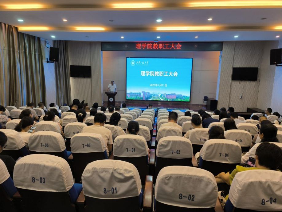 此次全体教职工大会的顺利召开,全面总结了学院上半年取得的各项工作业绩,系统谋划了下学期各项工作任务。新学期,理学院将继续坚决落实学校党委、行政的决策部署、紧盯“一院一策”三年行动计划、“十四五”规划和学院年度绩效考核目标等指标任务,踔厉奋发,笃行不怠,不负韶华,只争朝夕,扎实推进内涵建设,奋力谱写理学院事业高质量发展新篇章。