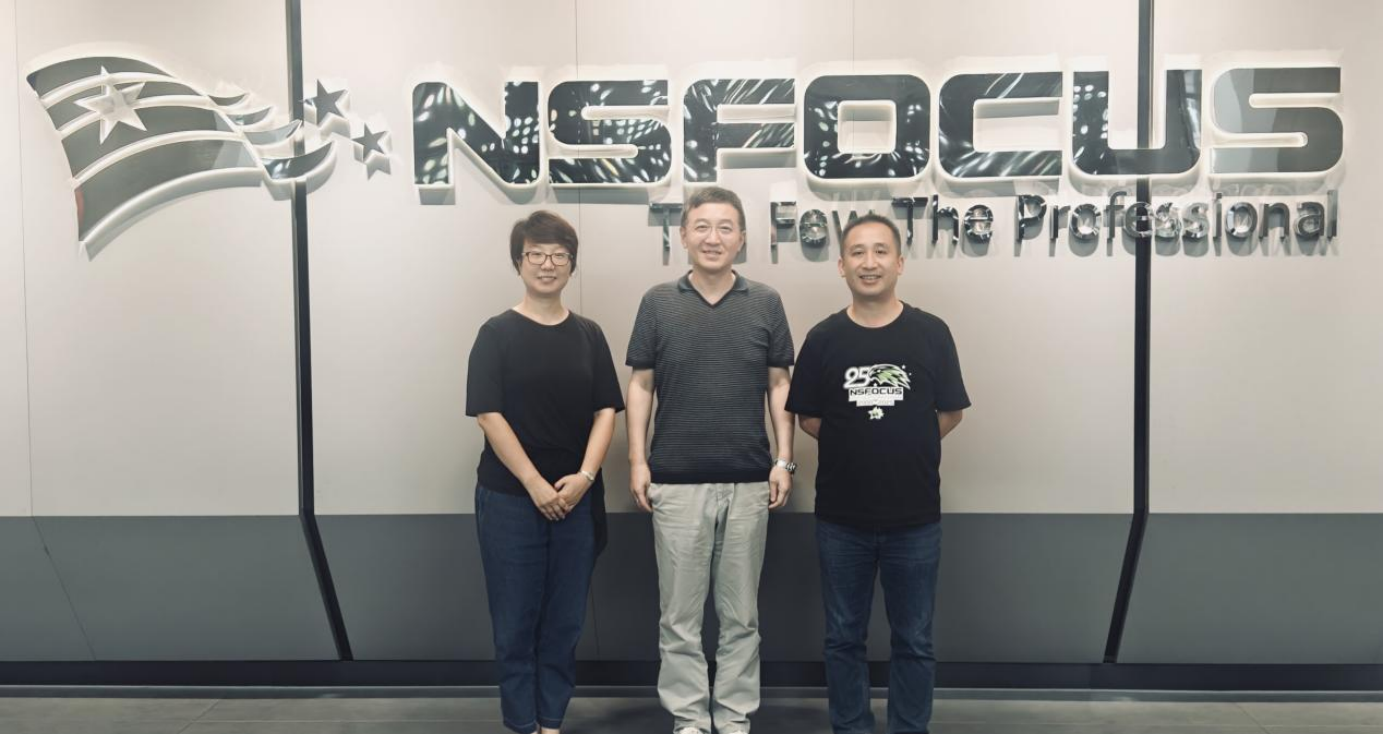 为进一步深化校企合作,提升网络空间安全专业人才培养质量,近日,教务处处长、网络安全学院院长马冬、教务处副处长任燕一行前往绿盟科技集团股份有限公司,就校企合作的14门课程教材编写事宜进行了深入的讨论与交流,绿盟科技副总裁陈刚校友,网络安全学院产业副院长、绿盟科技解决方案总工程师李永松参加会谈,网络安全学院副院长刘枫线上参会。