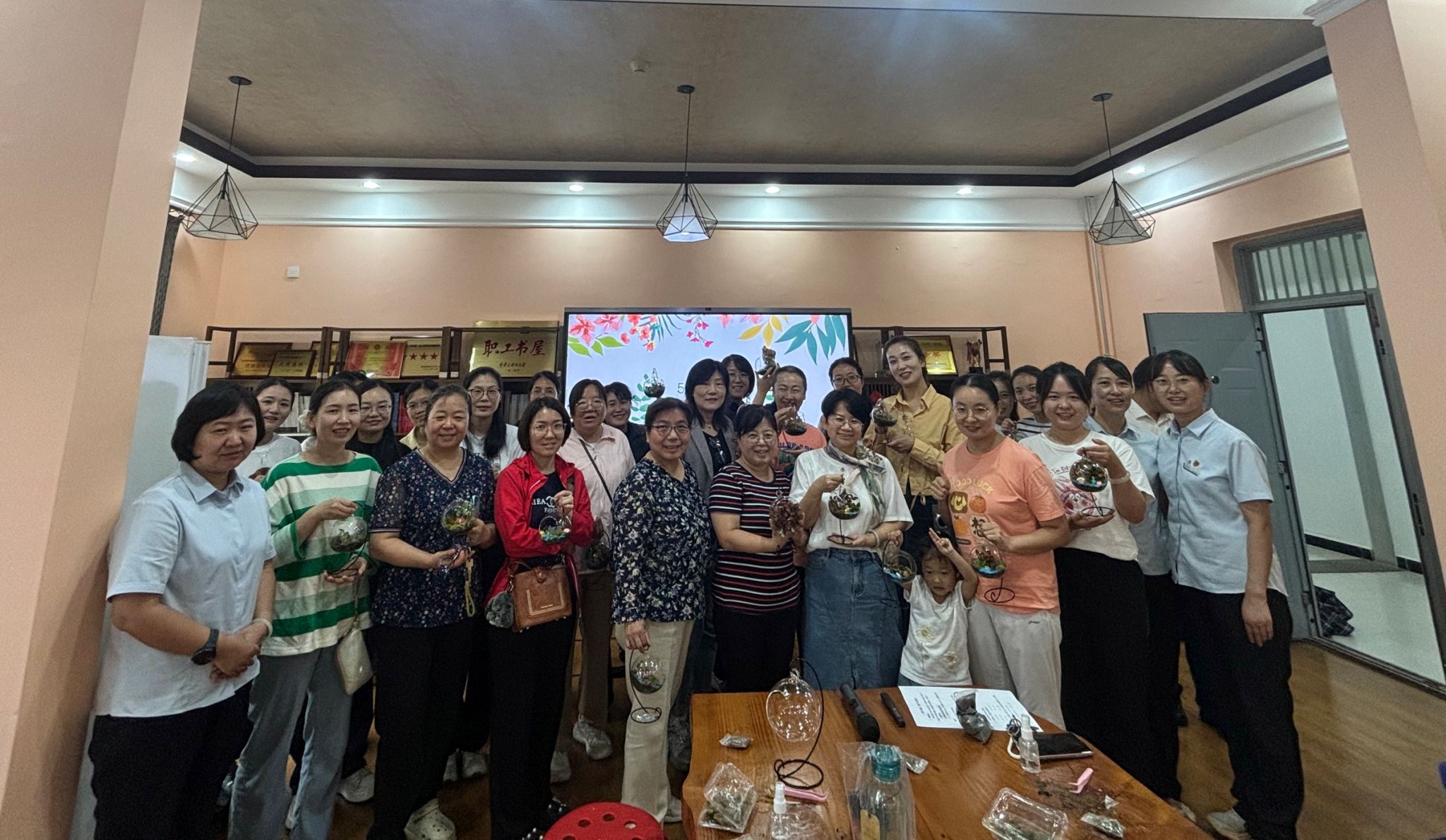 9月10日,beat365工会与中国建设银行西安友谊东路支行在临潼校区教工之家联合举办“方寸之间 致谢师恩”教师节创意微景观DIY活动,来自各分工会近80名教职工参加了活动。