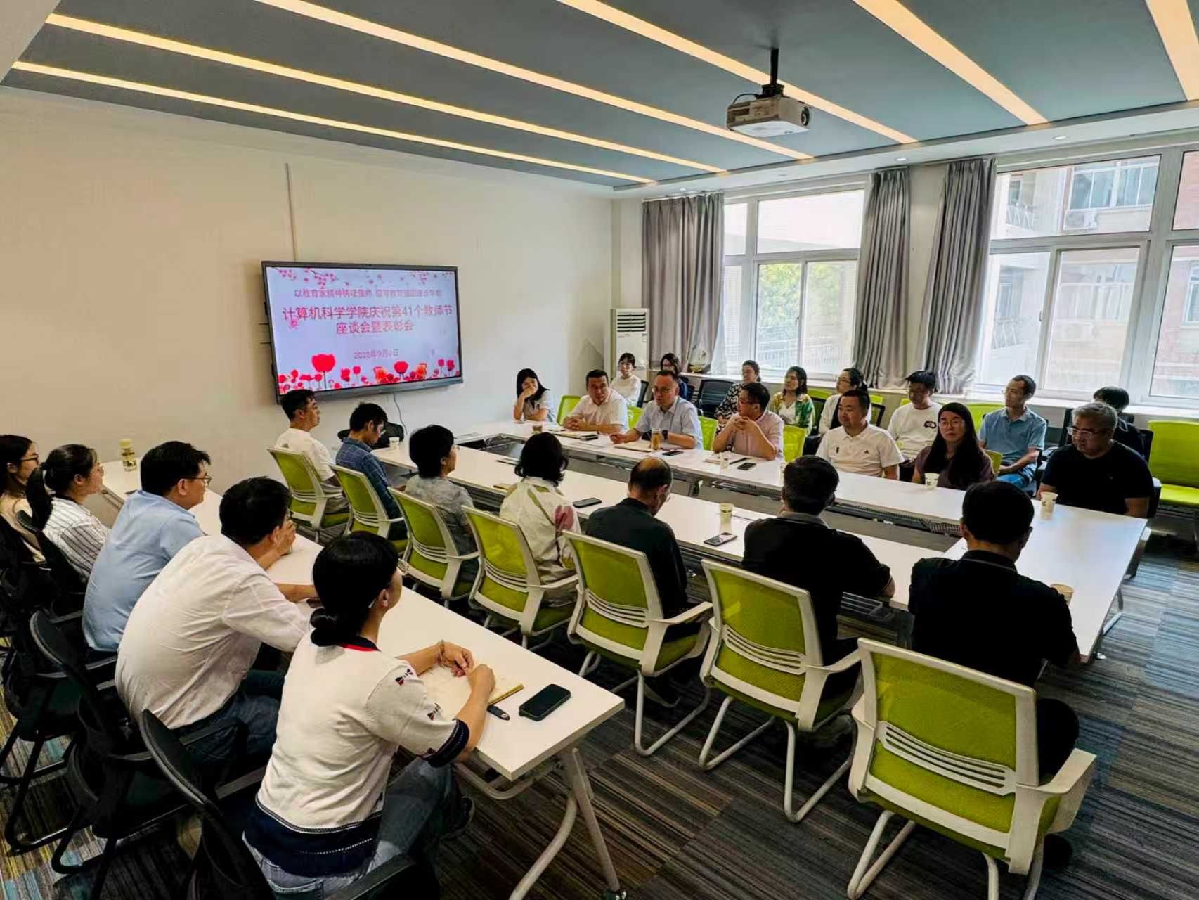 9月9日,计算机科学学院举办“以教育家精神铸魂强师,谱写教育强国建设华章”为主题的庆祝第41个教师节座谈会暨表彰会。学院党政工班子成员,各系(中心、办)主任,学生心目中的好教师,从教20年、30年教师,青年博士代表参加会议,会议由学院党委副书记闫小兵主持。