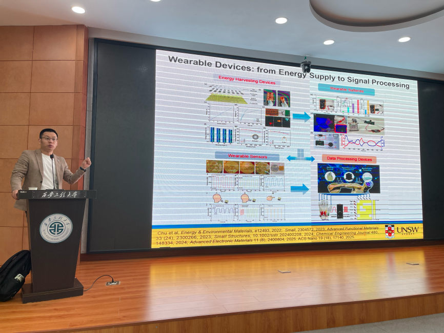 在交流环节,师生围绕水汽发电器件寿命与功率密度、海水淡化、柔性传感及“空气发电机”等话题踊跃提问,储教授一一予以细致解答,并就学院科研方向与团队建设提出宝贵建议。多位研究生就赴澳深造条件与培养政策进行咨询,储教授详细介绍了招生要求与语言条件,并鼓励学子在中澳友好交流背景下积极考虑海外研修。张洛红副校长也勉励在场学生把握国际化机遇,勇敢走向世界学术舞台。