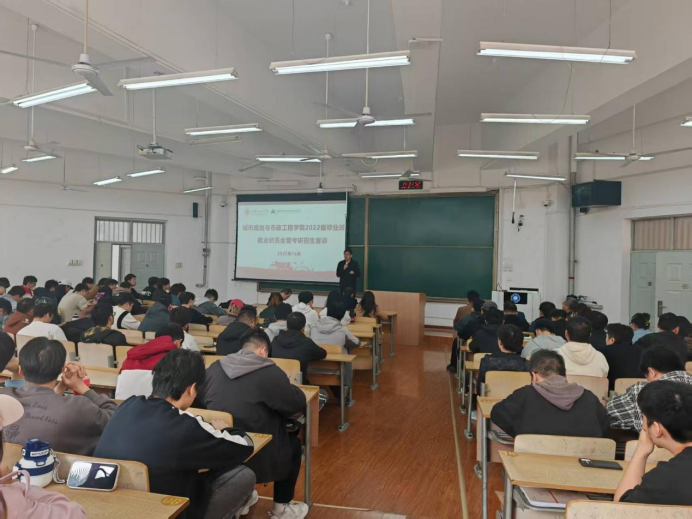 10月15日,城市规划与市政工程学院在临潼校区举办2026届毕业生就业动员会暨考研宣讲会。学院副院长房平、党委副书记鱼园、副院长杨涛,各系主任、学工办主任、相关辅导员以及全体2026届毕业生参加会议。