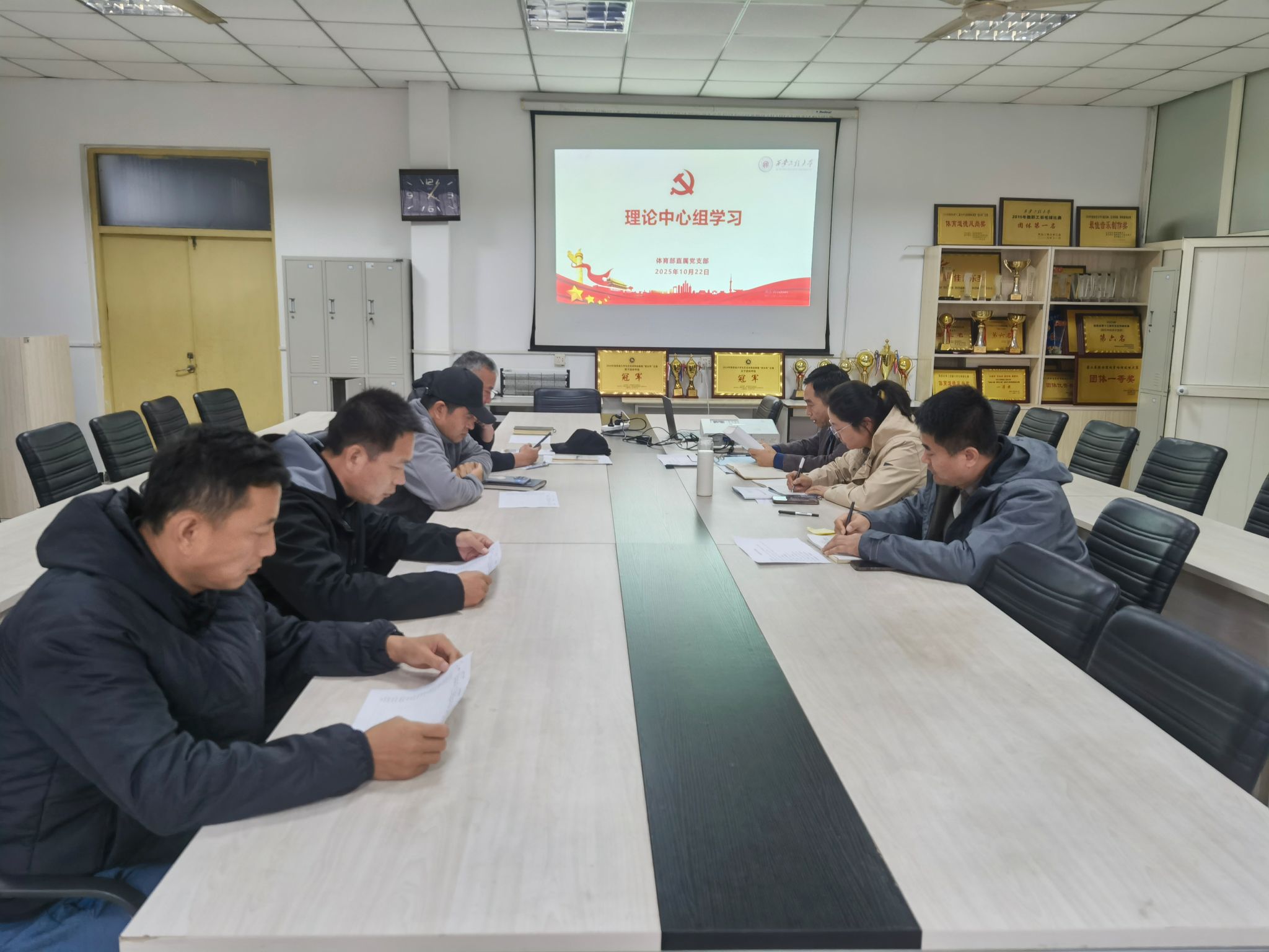 10月23日,体育部直属党支部理论学习中心组(扩大)开展集体学习,重点学习了习近平谈治国理政第五卷等。会议由体育部直属党支部书记张清录主持,理论学习中心组(扩大)全体成员参加了会议。