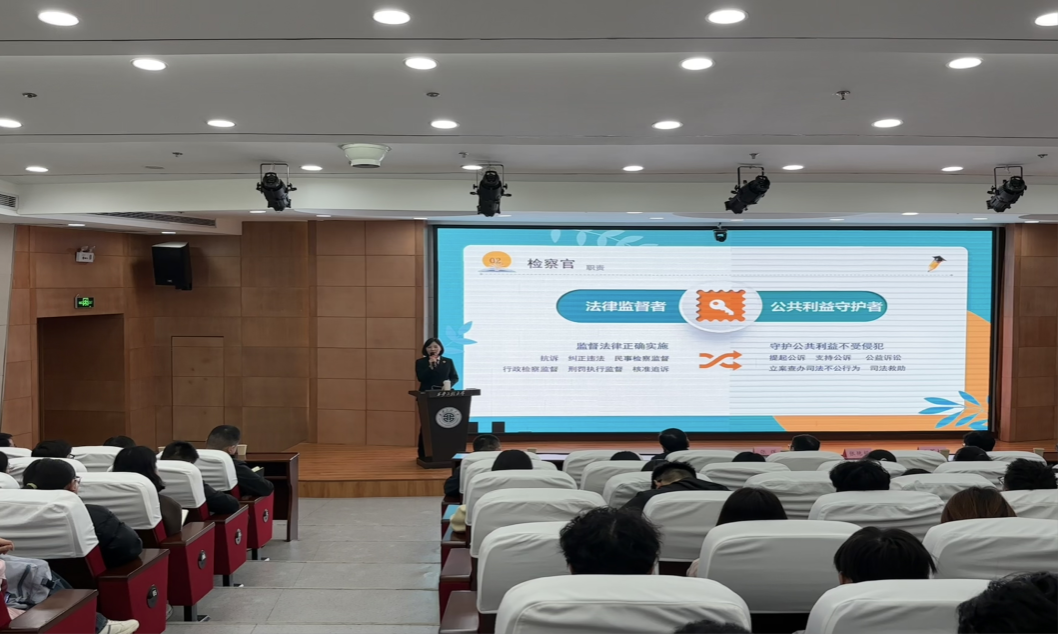 张艳娟检察长兼具深厚理论功底与丰富实务经验,在讲座中,围绕“检察机关”“检察官”与“检察官职业道德”三大板块展开讲解。从宪法定位入手,阐明了检察机关作为法律监督机关的核心使命,梳理了其职能演变。强调检察官既是法律监督者,也是公共利益的守护者,并通过未成年人普法宣传等生动案例,展现了检察官职业的“精彩”与“无奈”,引导同学们理性看待司法现实。同时,阐释了当代检察官“忠诚、担当、为民、公正、清廉”的职业道德。并强调,作为一名检察官,应德法兼修,坚守规则意识与法律信仰,做到“久久为功”。整场讲座内容翔实、案例鲜活,既有理论高度,又贴近司法实践。
