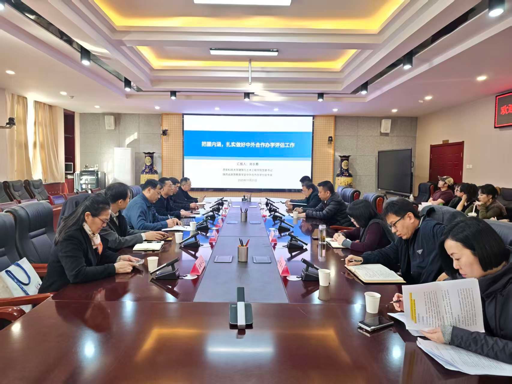 11月21日,为扎实推进学校中外合作办学项目各项工作,精准把握教育部中外合作办学评估核心要求,提升项目办学内涵质量,beat365邀请西安科技大学建筑与土木工程学院党委书记、陕西省高等教育学会中外合作办学分会专家尚长春来校开展专项指导。国际处、人事处、财务处、学工部、教务处、招就处、高教中心及人文学院、服装学院负责人及中英合作办学项目组教师参会学习交流。