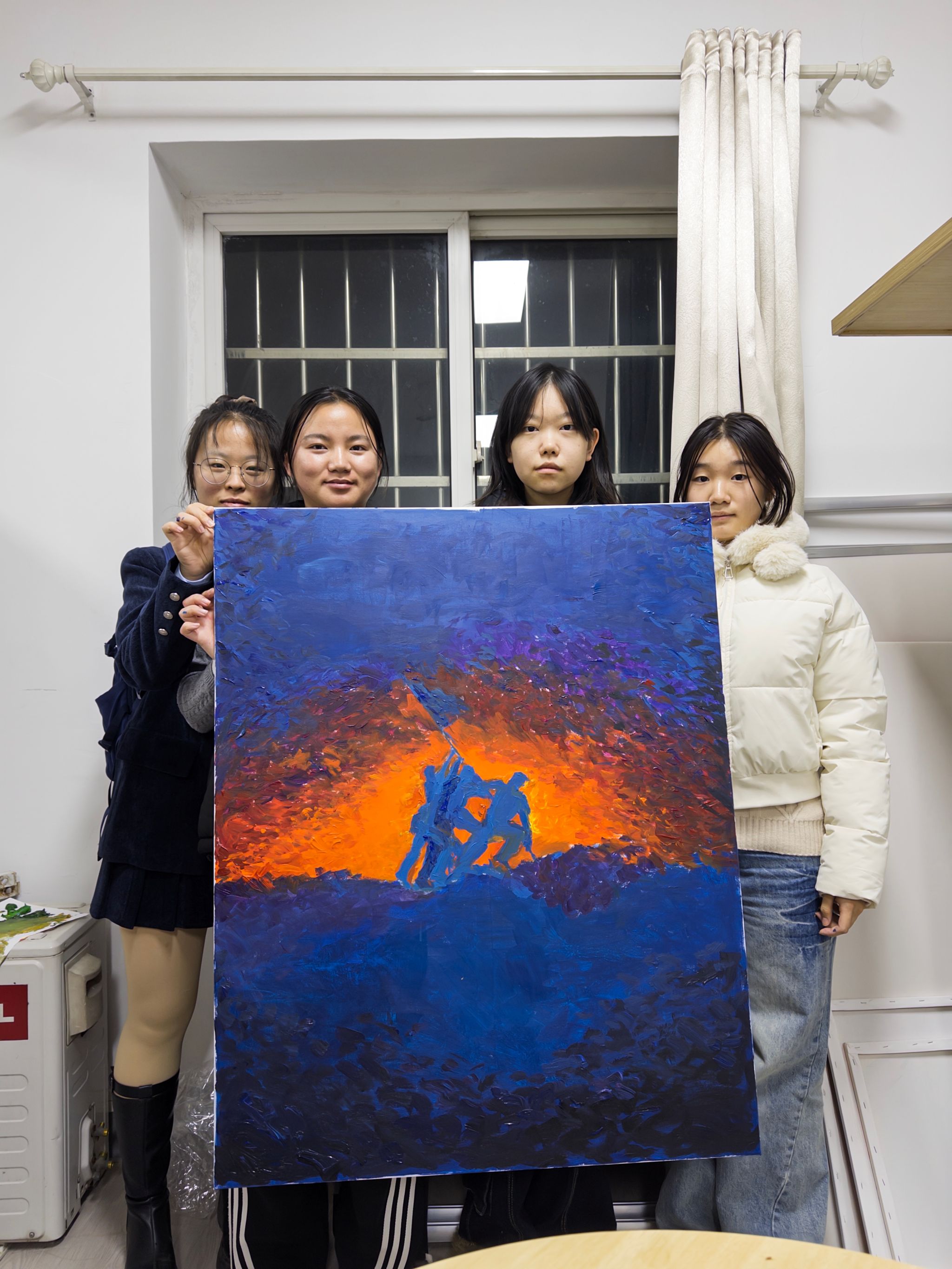 在活动现场,同学们自由组合,以不超过三人的小组形式协同创作,在画布上描绘出一幅幅饱含红色情怀的艺术画卷。绘画过程中,大家不仅展现出良好的团队协作精神,更在笔墨间深情表达了对红色历史与革命精神的深刻理解。作品完成后,各组代表依次分享了创作心得,讲述画面背后所蕴含的红色文化内涵与时代意义。