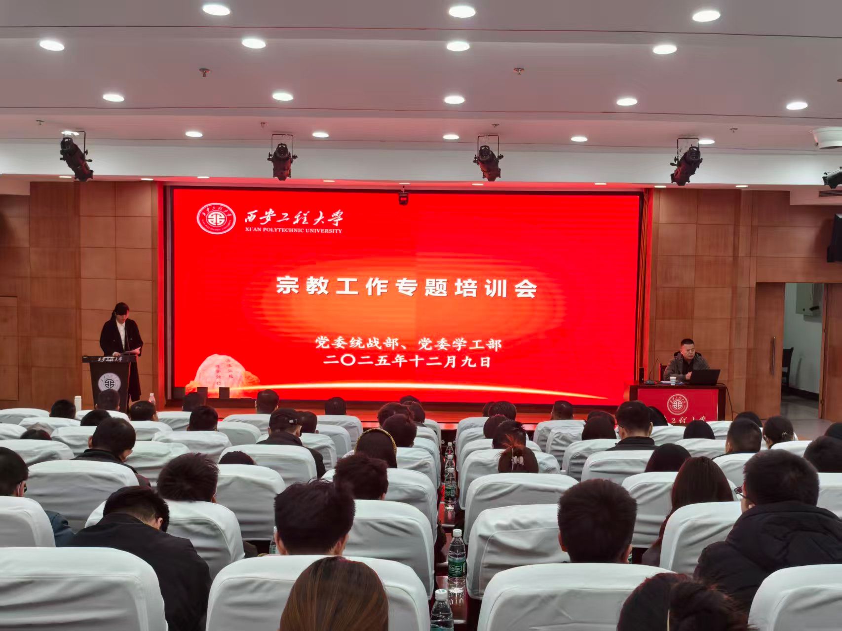 12月9日,由校党委统战部、学生工作部(处)联合主办的宗教工作专题培训会在临潼校区举行,本次培训会旨在深入学习贯彻习近平总书记关于宗教工作的重要论述,进一步提升beat365做好宗教工作能力素质及业务水平。会议邀请西安市民族宗教事务委员会二级调研员张高亮作专题辅导报告。党委统战部部长张冬梅主持会议。