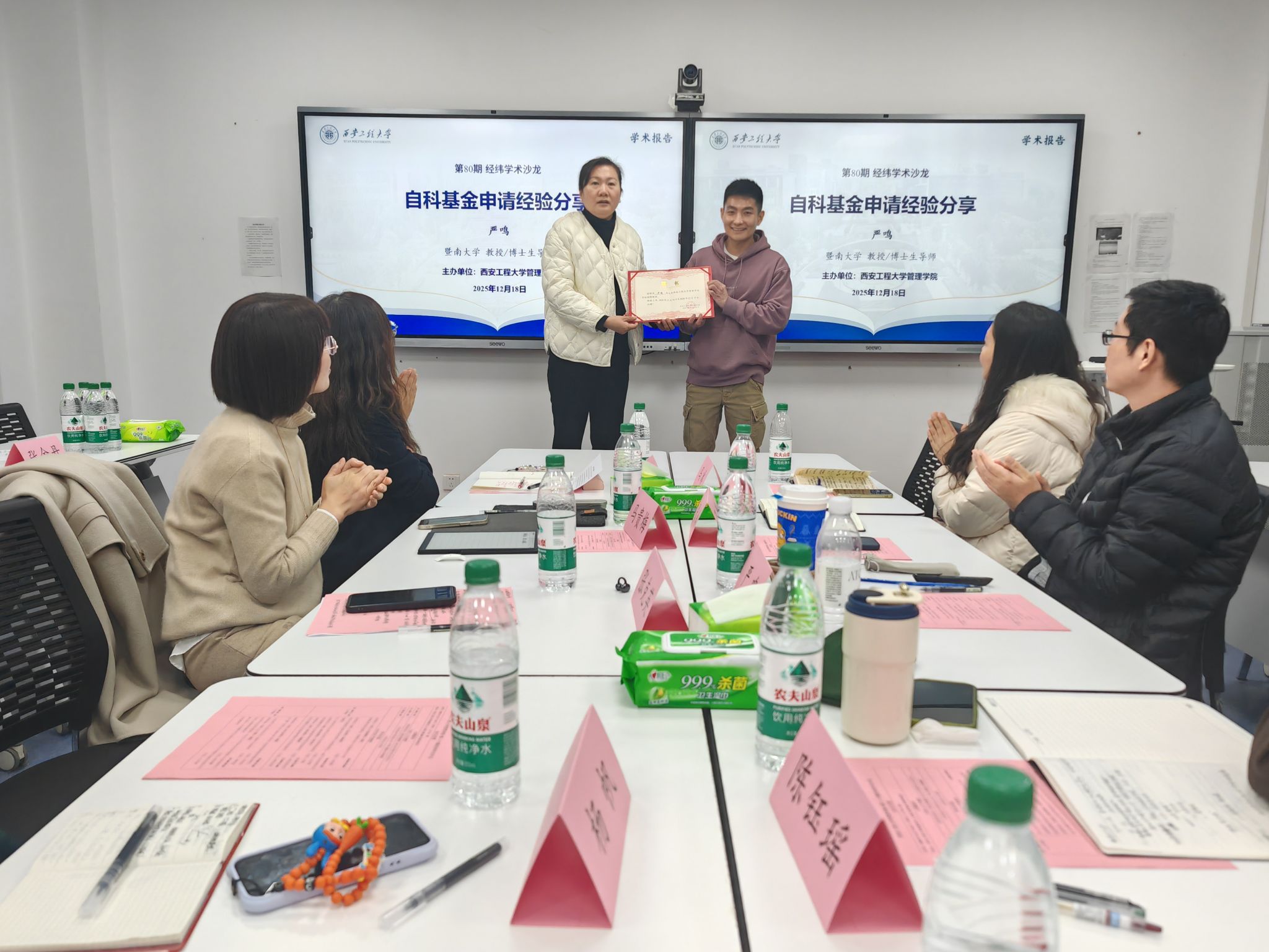 12月18日,管理学院在临潼校区举办第八十期经纬学术沙龙,邀请暨南大学管理学院严鸣教授作“自科基金申请经验分享”主题报告。管理学院院长张克英,学院人力资源管理学科方向学术骨干、青年教师及研究生代表参加了会议。