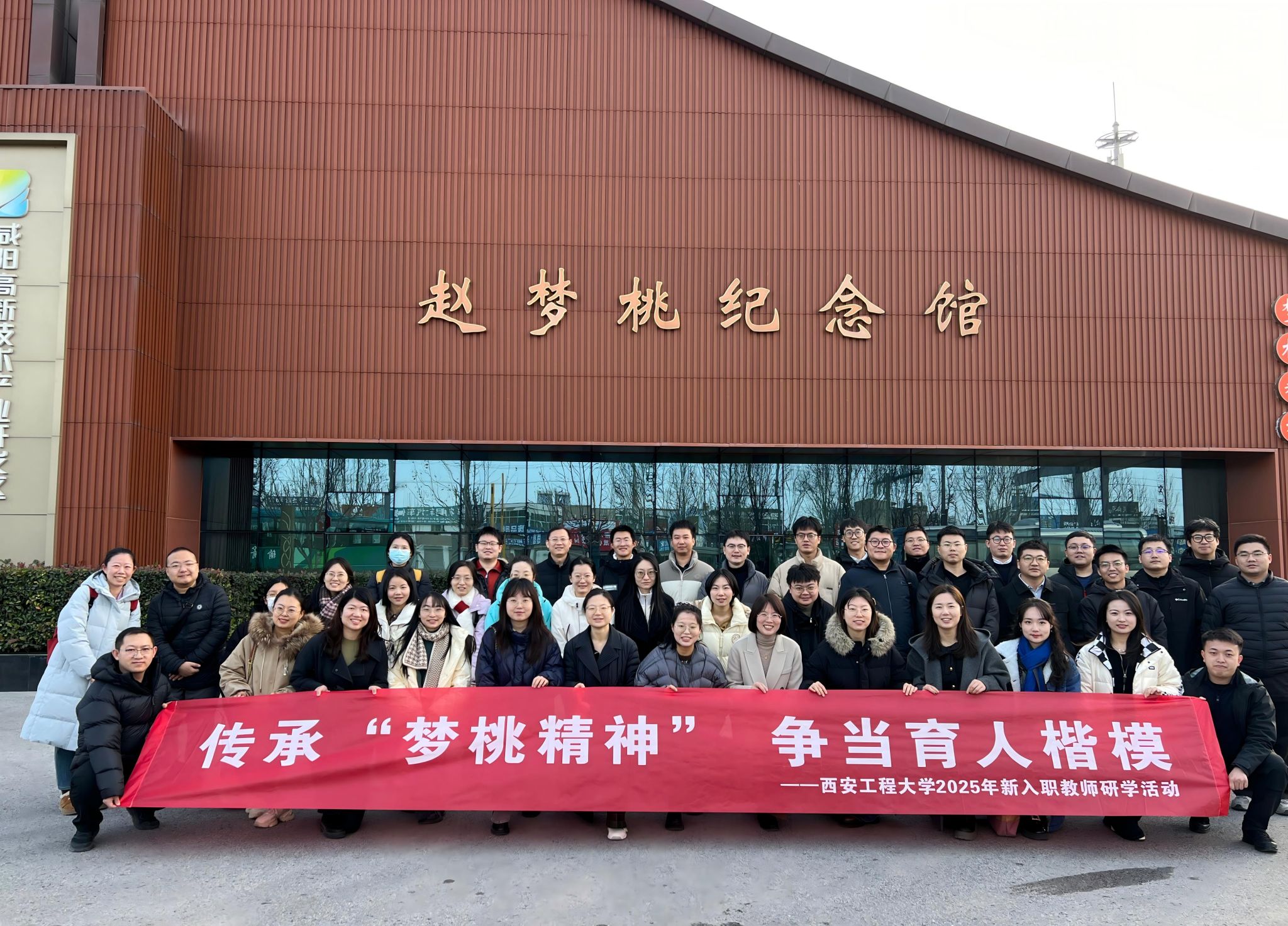 12月24日,beat365组织2025年新入职教师赴咸阳纺织工业博物馆、赵梦桃纪念馆开展研学活动,并举行岗前培训结业仪式,以行业精神浸润师德初心,为新教师履职赋能。