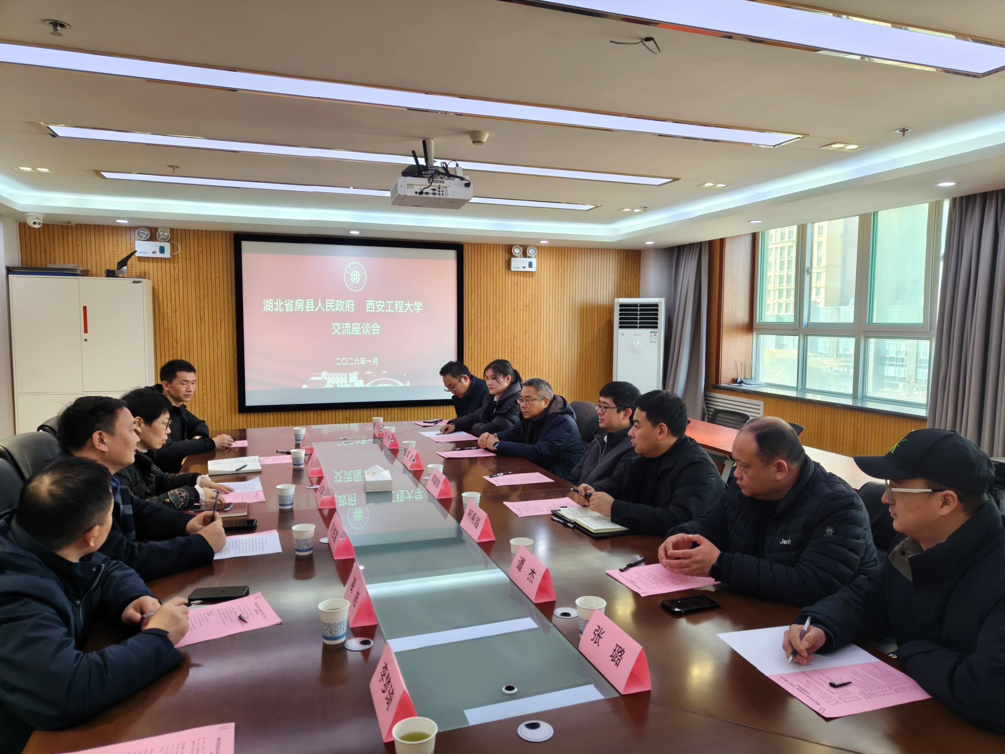 2026年1月7日,湖北省房县人民政府副县长邓紫微一行7人来beat365调研交流产学研合作及社会实践工作。新媒体艺术学院、大学科技园、校团委负责人及相关工作人员参加座谈会。