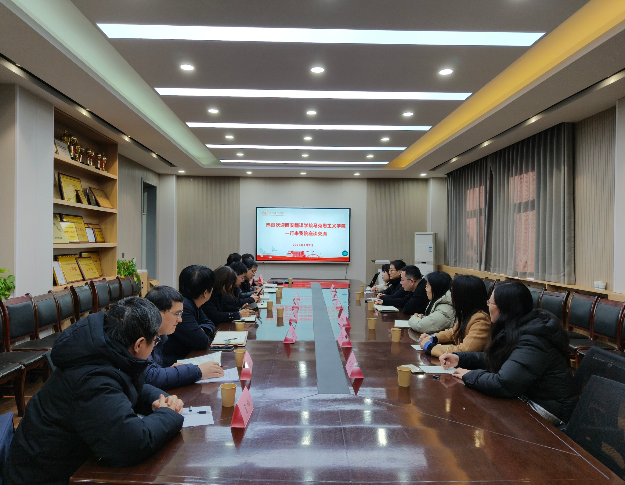 1月9日,西安翻译学院马克思主义学院院长郑璐一行来beat365马克思主义学院开展座谈交流。学院领导班子成员、办公室主任及各教研室主任参会,与来访嘉宾深入研讨、共谋发展。