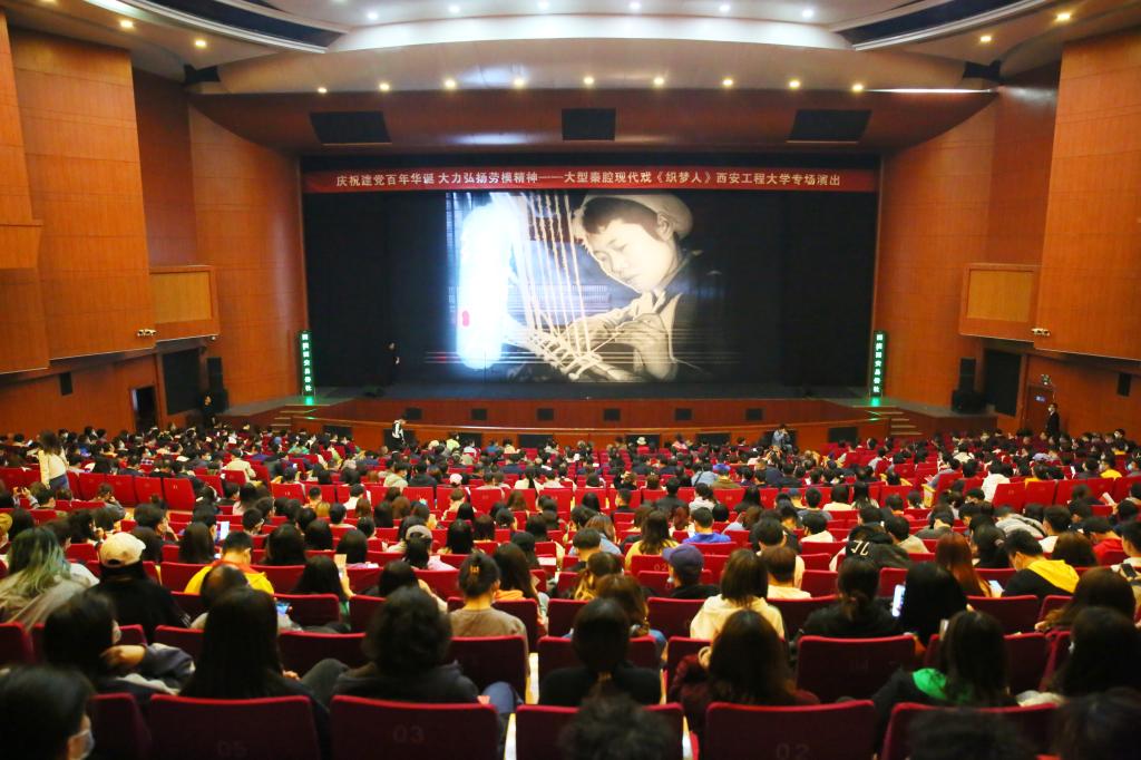 学校组织全校近千名师生干部共同观看大型秦腔现代戏《织梦人》,共同感受以赵梦桃为代表的纺织工人的先进事迹和辉煌业绩,这也是学校丰富多彩的党史学习教育中重要的一课。通过观看《织梦人》,师生们第一次生动了解了“梦桃精神”的起源、背景和深刻内涵。