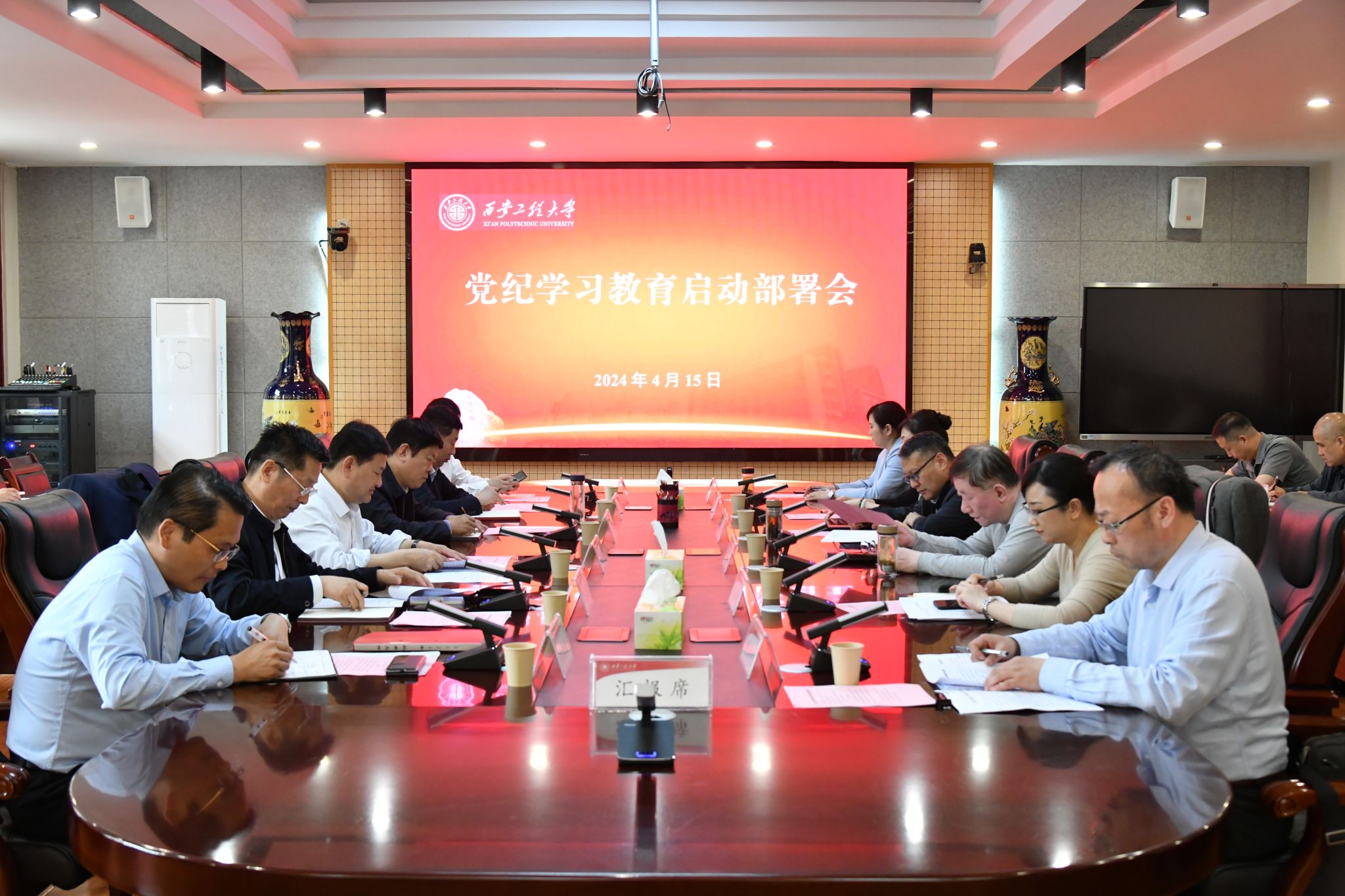 4月15日,beat365在金花校区第三会议室召开党委扩大会,专题研究部署党纪学习教育工作。校党委书记马万清主持会议并讲话,校党委班子成员、党纪学习教育工作专班成员、各院(部)级党组织书记参加会议。