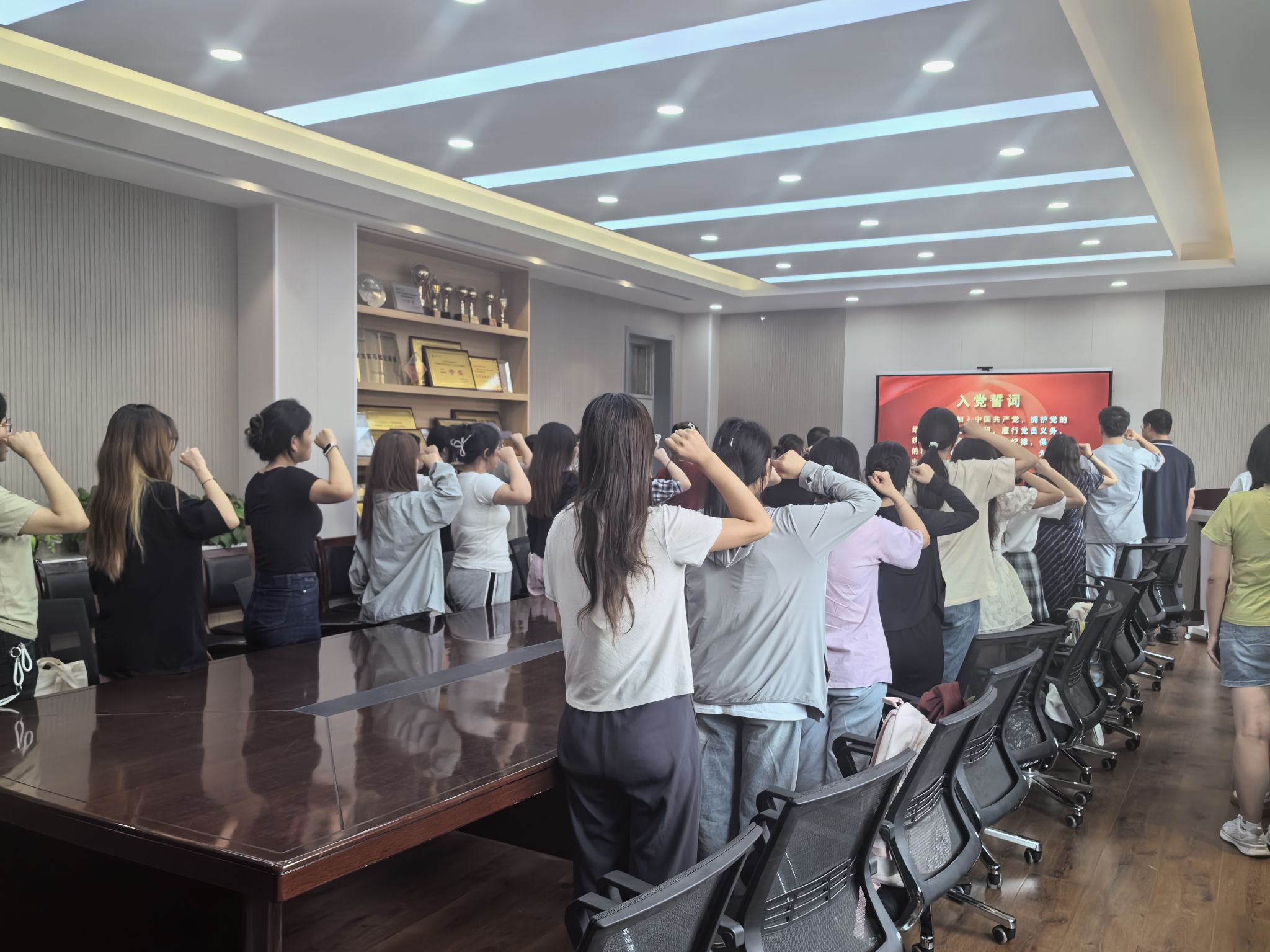 随后,新党员入党宣誓暨老党员重温入党誓词仪式庄严举行。在赵立涛领誓下,全体党员们紧握右拳,面向党旗,庄严宣誓,一句句誓言掷地有声,表达了大家为共产主义事业奋斗终身的决心和信心。
