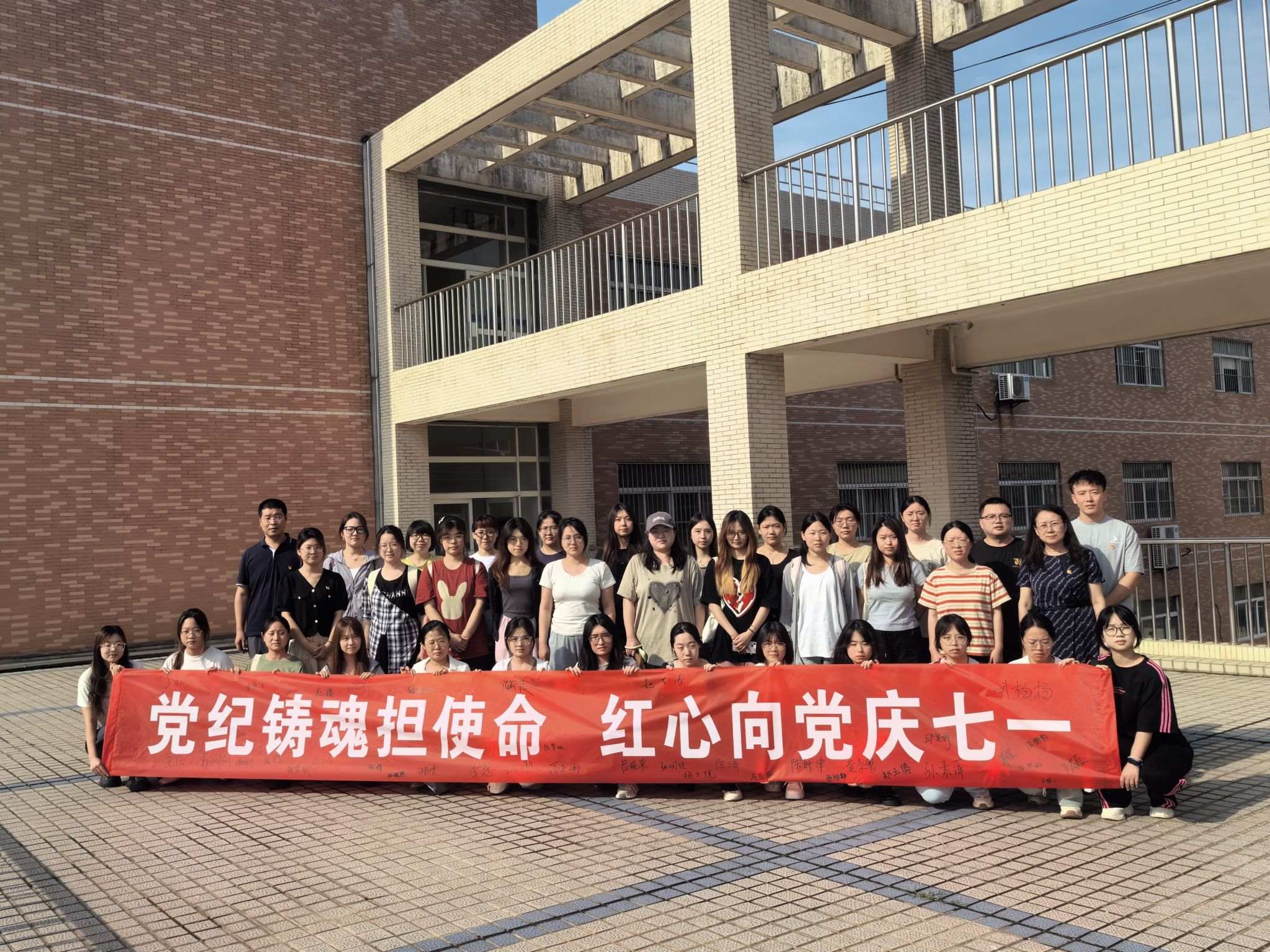 活动最后,全体党员进行了“党纪铸魂担使命红心向党庆七一”主题签名活动。党员们纷纷在横幅上郑重签下自己的名字,每一个签名都是对“红心向党”的坚定表达,每一笔都是对党的深情厚意。这不仅是一份承诺,更是一份责任,表达了大家永远跟党走、矢志不渝为共产主义事业奋斗终身的坚定信念。