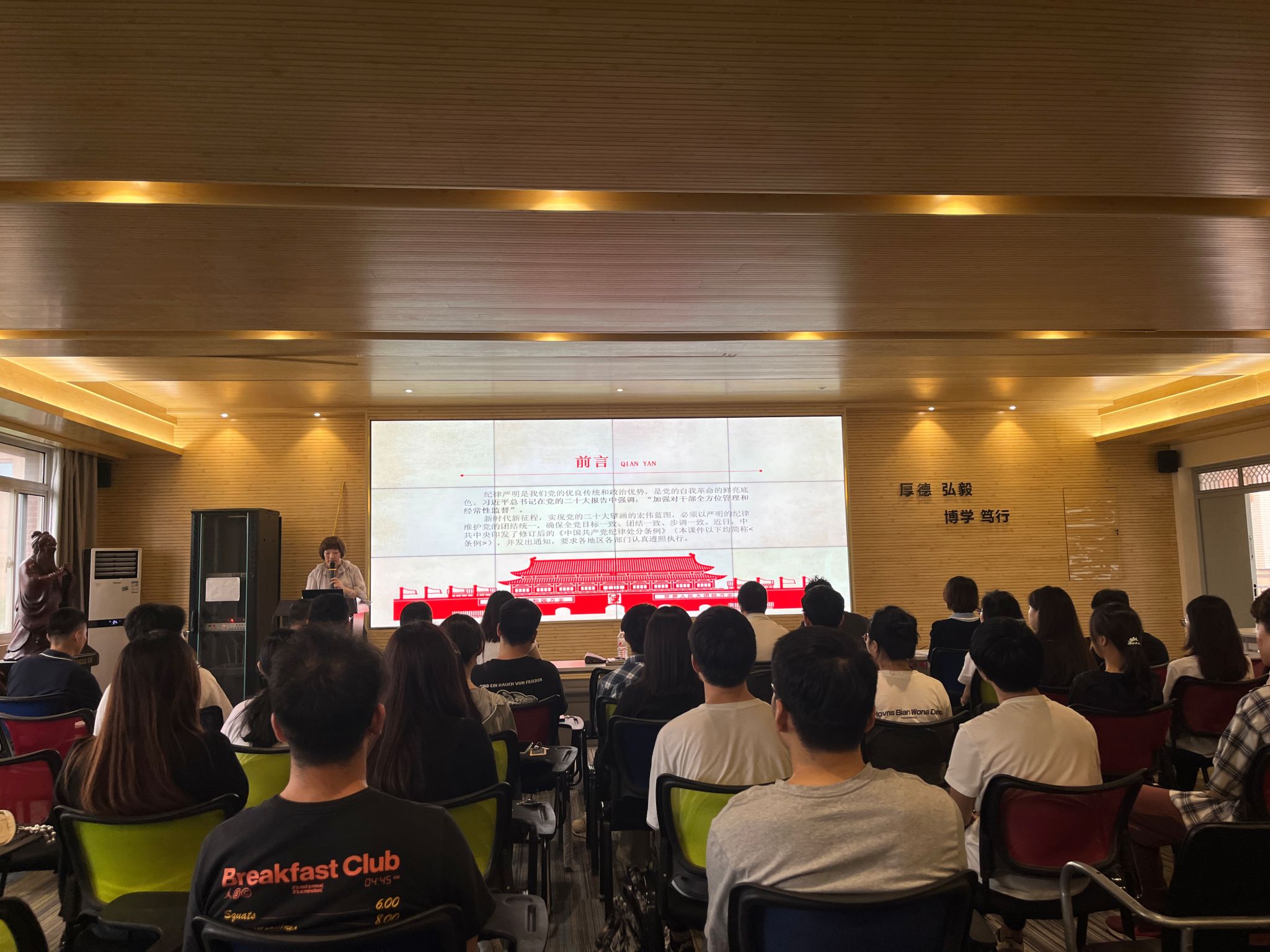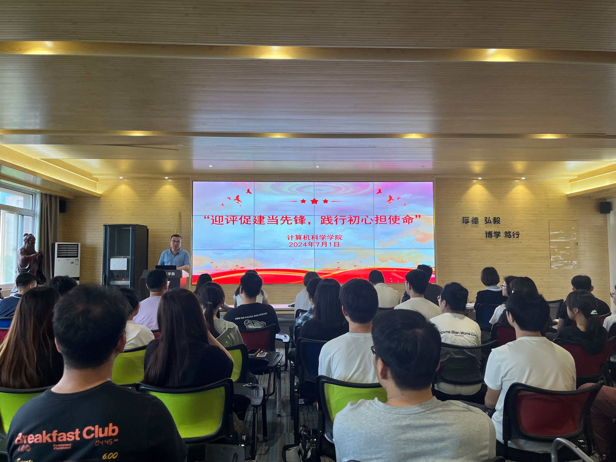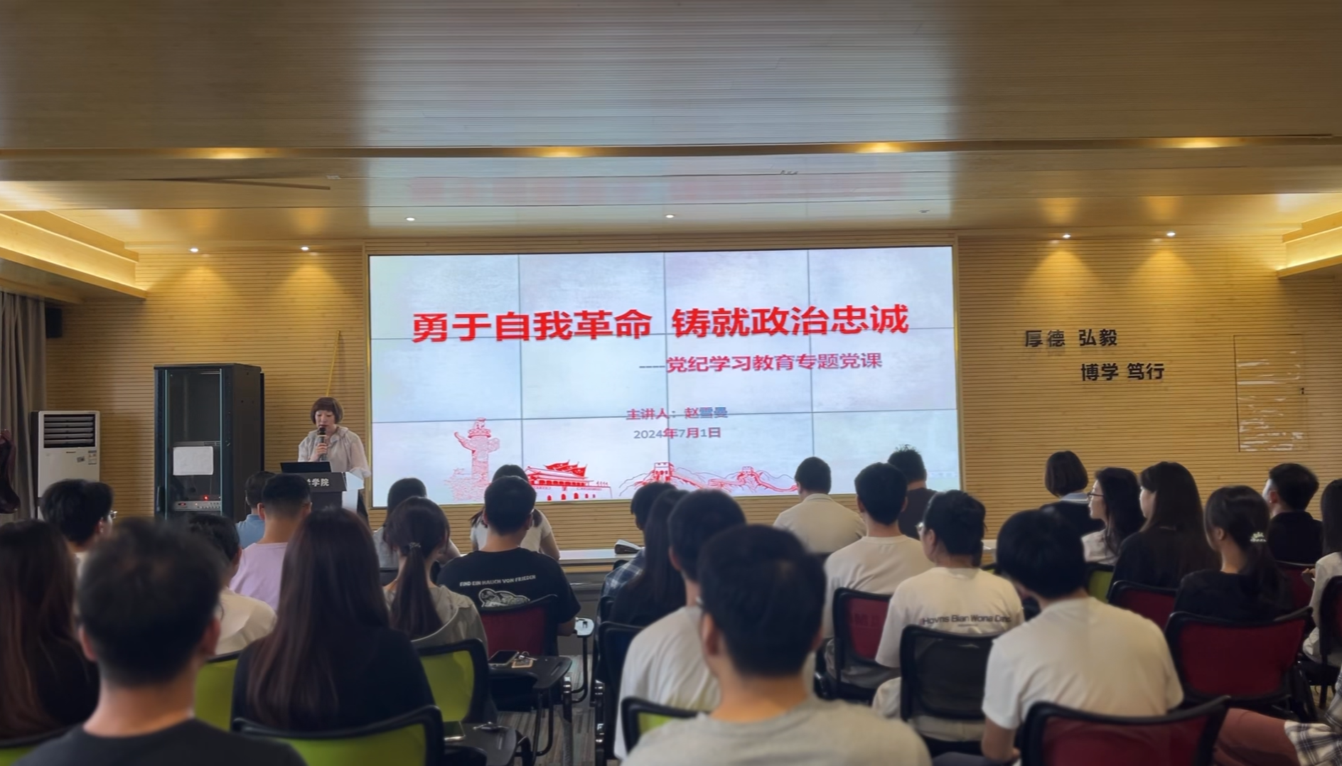 7月1日上午,计算机科学学院在临潼校区笃行楼614报告厅举办党委书记讲授党纪学习教育专题党课暨党规党纪警示教育大会。学院党委书记赵雪曼、全体党支部书记、辅导员,新近发展的40名预备党员参加了大会,会议由学院党委副书记赵勇进主持。