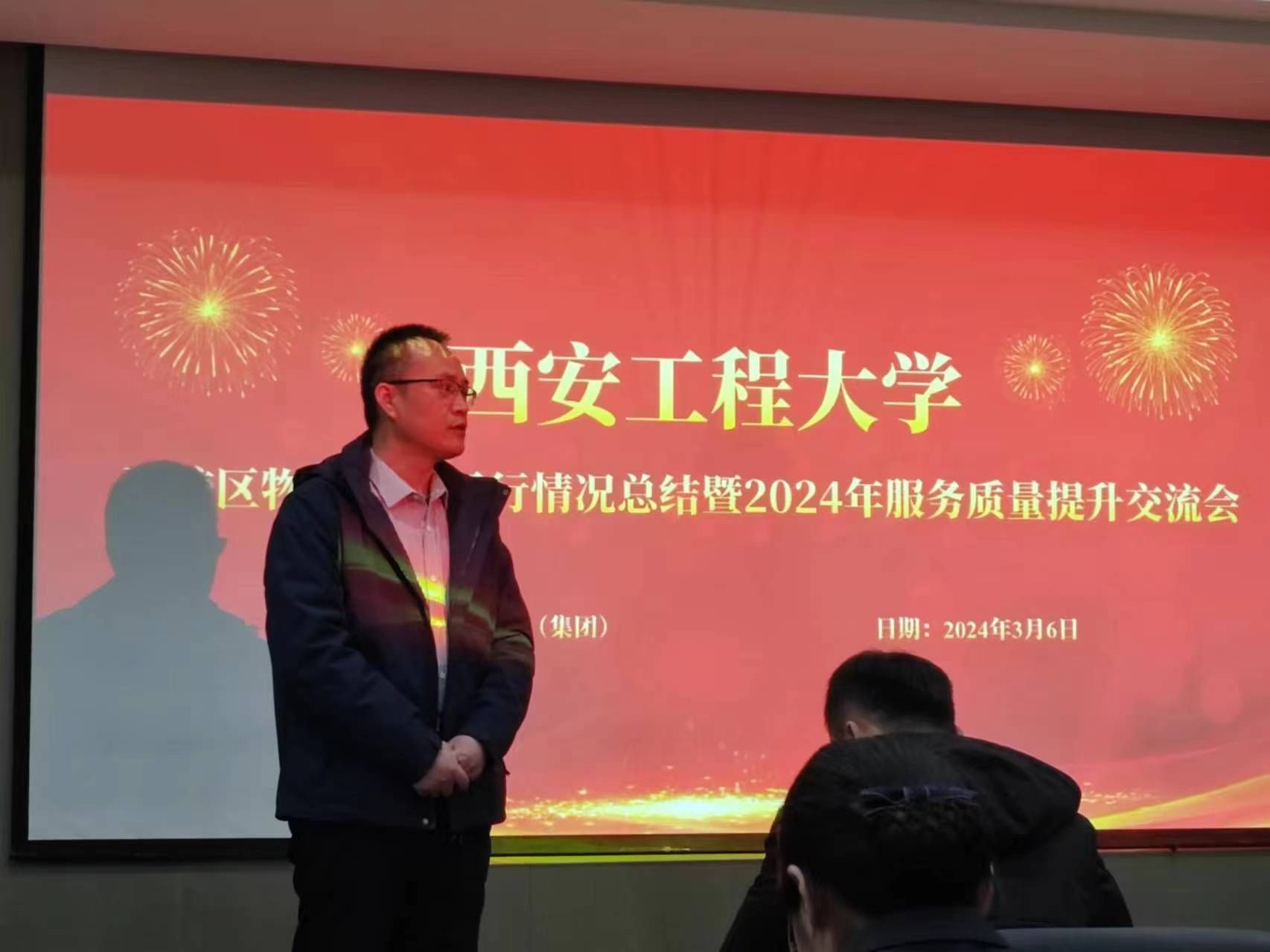 后勤管理处(集团)处长张峰对物业公司上学期工作予以肯定,特别是在教育部重点实验室复评、汉服研究院新闻发布会等重大活动中能够积极配合学校做好服务保障给予表扬。张峰强调,要从细节着手不断改进完善服务标准;树立校园环境大管家意识,以师生为本,梳理企业良好品牌形象;加强与学校常态沟通,共同服务好师生学习工作生活。